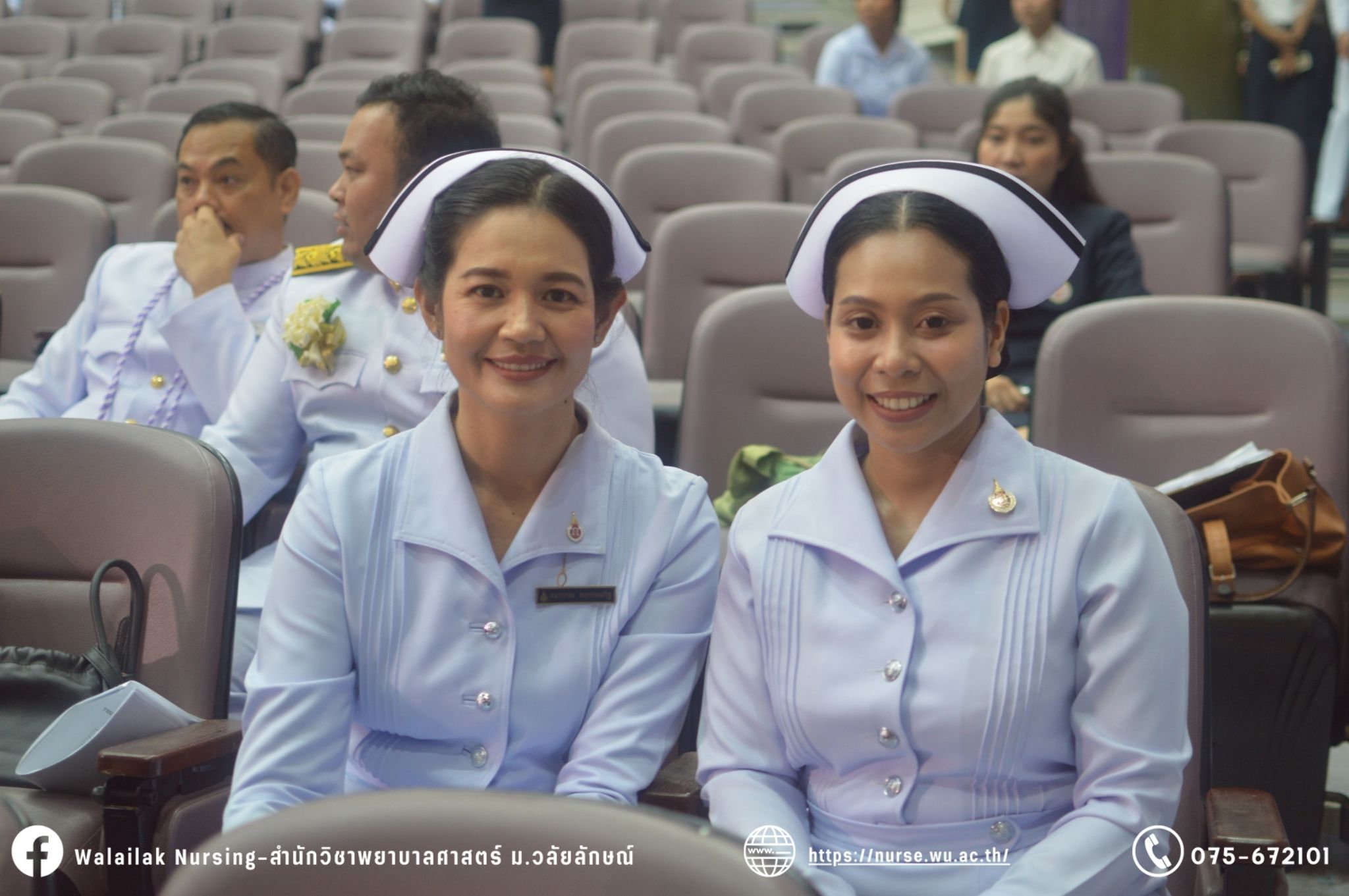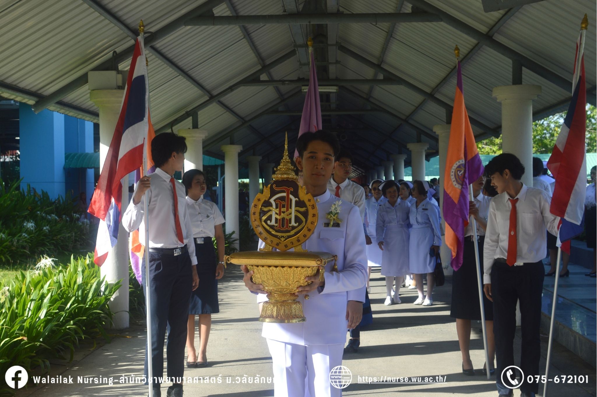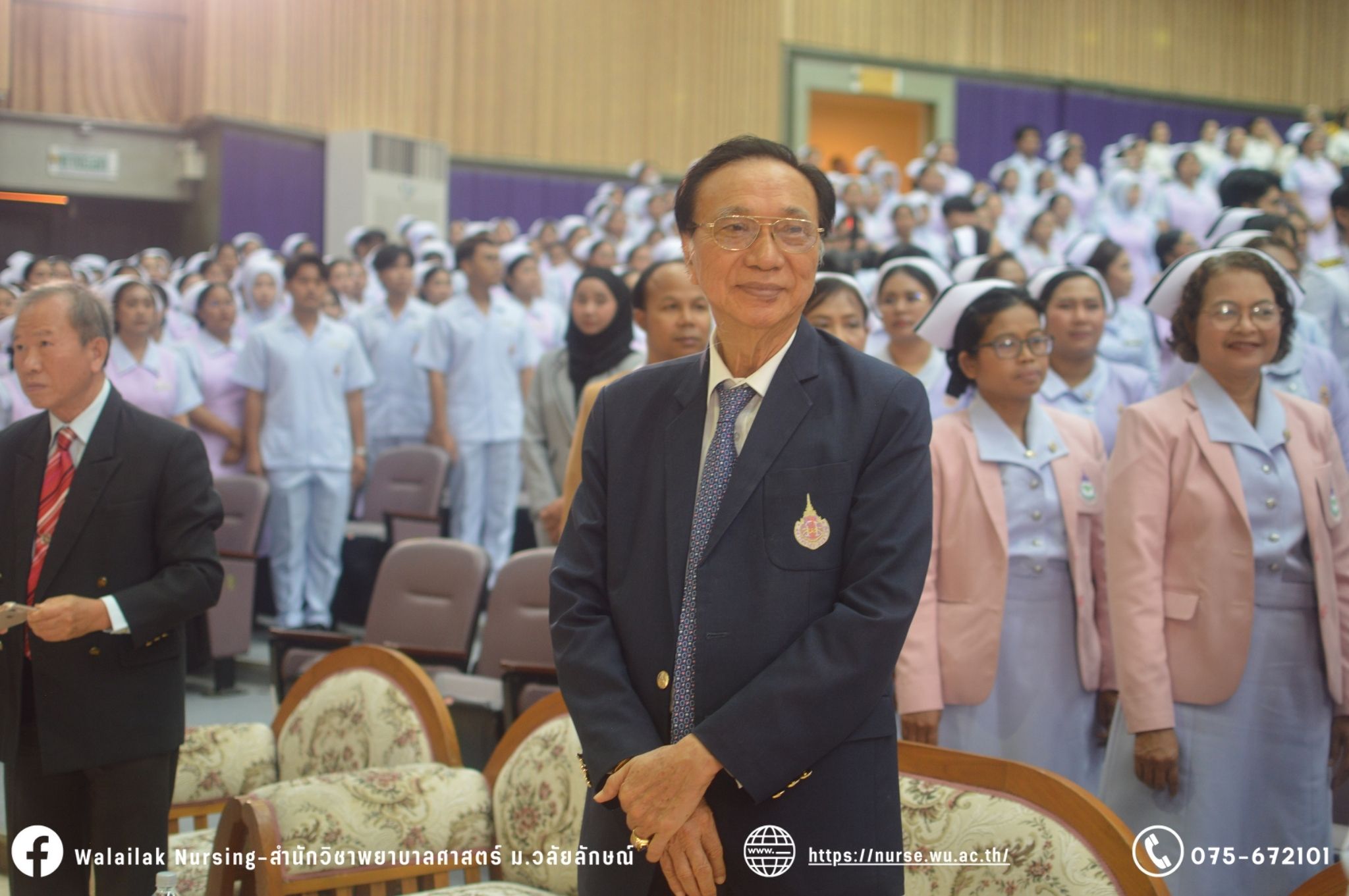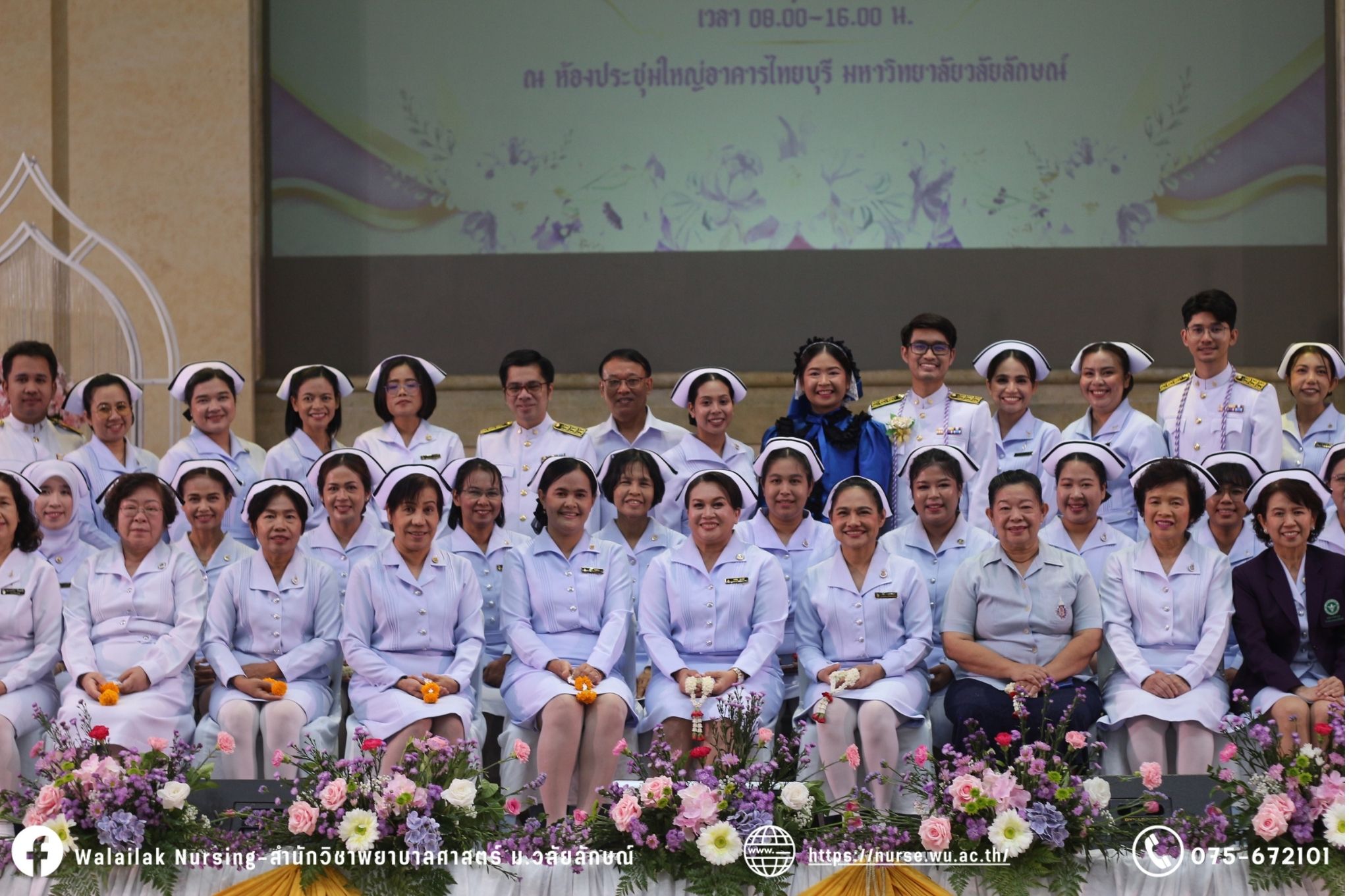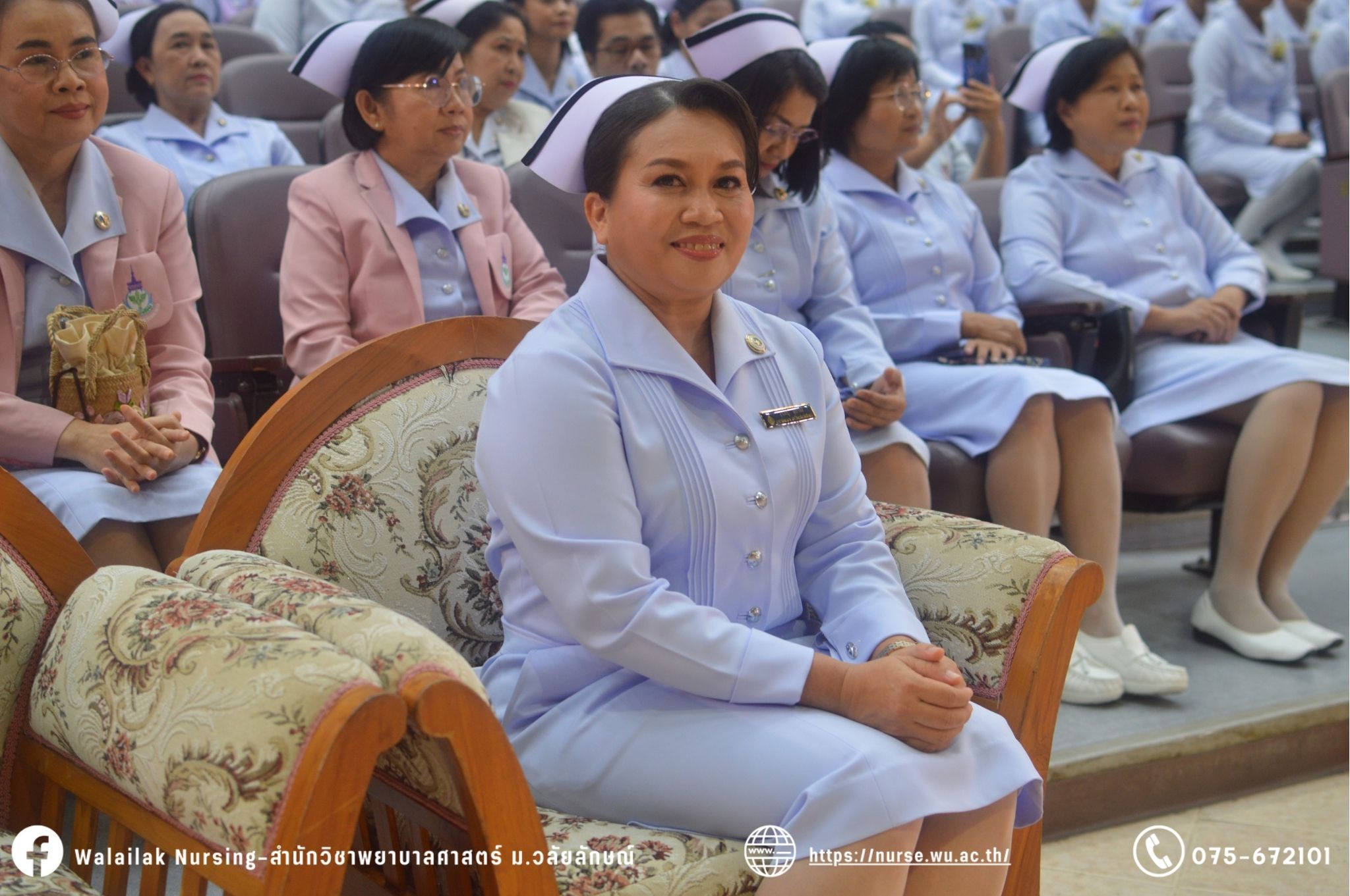 เมื่อวันที่ 15 มิถุนายน 2567 สำนักวิชาพยาบาลศาสตร์ มหาวิทยาลัยวลัยลักษณ์ จัดพิธี มอบขีด หมวกพยาบาล เข็มสถาบัน และพิธีมอบประกาศนียบัตรผู้ช่วยพยาบาล ณ หอประชุมใหญ่ อาคารไทยบุรี โดยกิจกรรมในครั้งนี้ ผู้ช่วยศาสตราจารย์ ดร.อรเพ็ญ สุขะวัลลิ คณบดีสำนักวิชาพยาบาลศาสตร์เป็นประธานในพิธี อาจารย์สุดา ใจห้าว รองคณบดีสำนักวิชาพยาบาลศาสตร์ กล่าวรายงานโครงการ และกิจกรรมในครั้งนี้ได้รับเกียรติจาก ศาสตราจารย์ ดร.สมบัติ ธำรงธัญวงศ์ อธิการบดี มหาวิทยาลัยวลัยลักษณ์ ได้เข้าร่วมพิธี กล่าวต้อนรับผู้ปกครองและให้โอวาท แสดงความยินดีกับผู้สำเร็จการศึกษา นักศึกษาที่ได้รับหมวก ขีดหมวก เข็มสถาบัน และผู้ได้รับรางวัล สำหรับการจัดกิจกรรมในครั้งนี้ได้จัดขึ้นเพื่อแสดงความยินดีให้กับบัณฑิตหลักสูตรพยาบาลศาสตรบัณฑิต ที่สำเร็จการศึกษา นักศึกษาพยาบาลชั้นปีที่ 3 มหาบัณฑิต หลักสูตรพยาบาลศาสตรมหาบัณฑิต ผู้สำเร็จการศึกษาหลักสูตรประกาศนียบัตรผู้ช่วยพยาบาล และผู้ได้รับรางวัลและเกียรติบัตรในการเป็นตัวอย่างที่ดีทั้งด้านการเรียนการปฏิบัติงาน จิตอาสา และบำเพ็ญประโยชน์เพื่อส่วนรวม รวมถึงผู้ได้รับรางวัลศิษย์เก่าดีเด่น จากสมาคมศิษย์เก่าพยาบาลวลัยลักษณ์ ทั้งนี้เพื่อเป็นการสร้างสัมพันธภาพที่ดีระหว่างรุ่นพี่ รุ่นน้อง และสร้างเจตคติที่ดีต่อวิชาชีพ พร้อมเข้าสู่วิชาชีพพยาบาลทั้งในด้านวิชาการ วิชาชีพ
