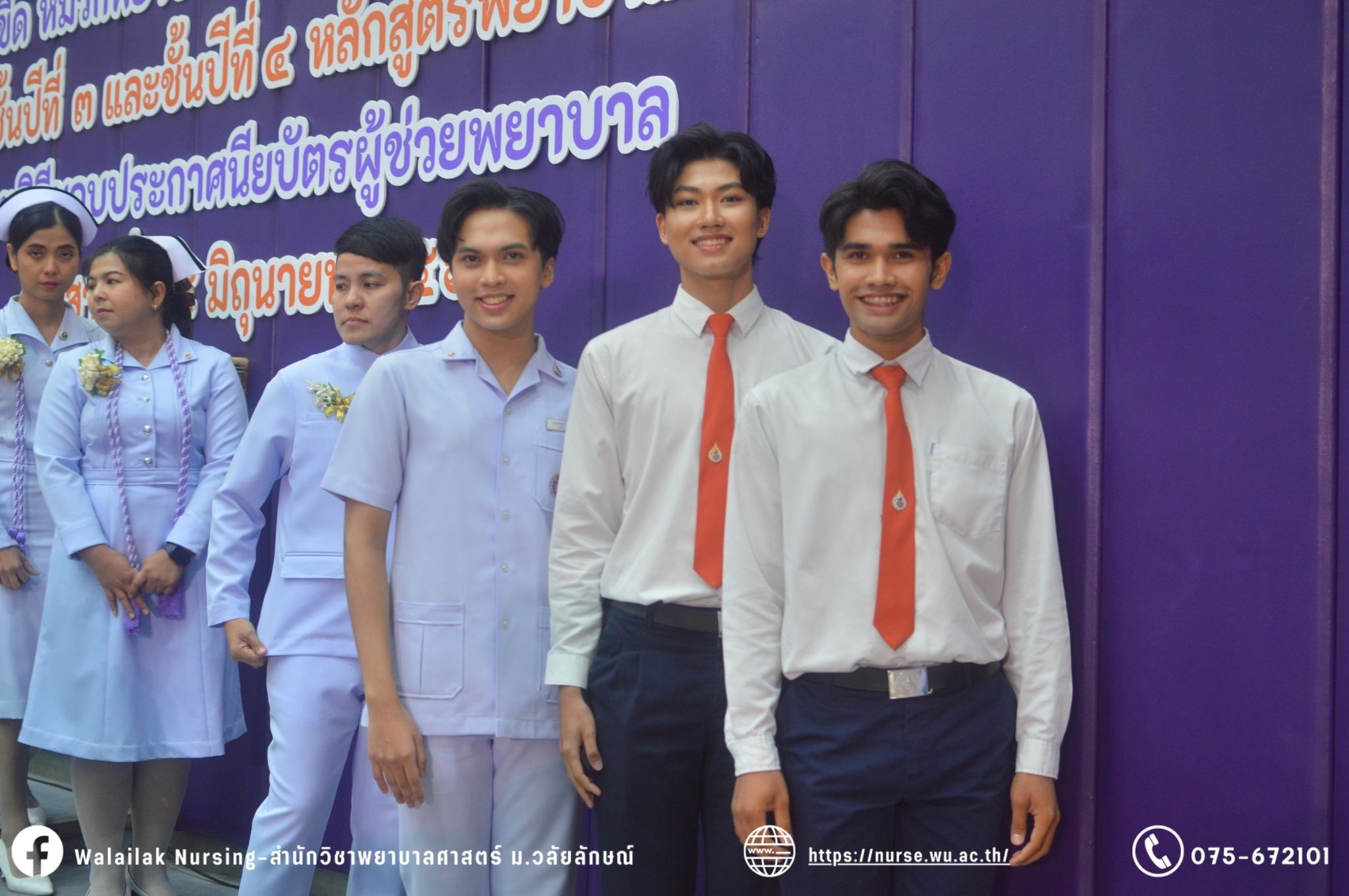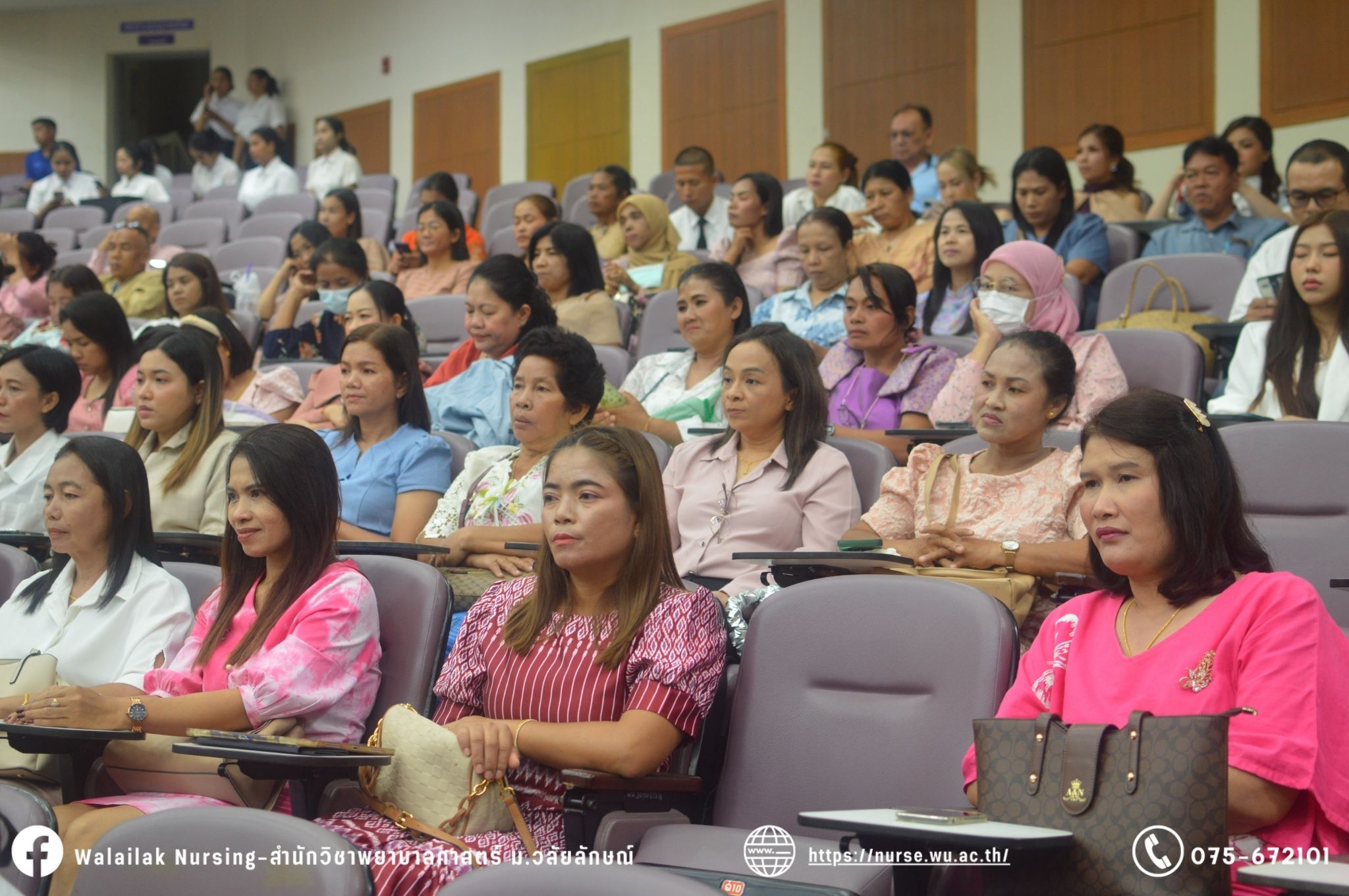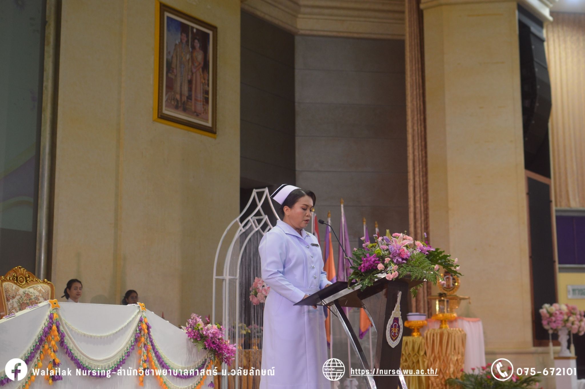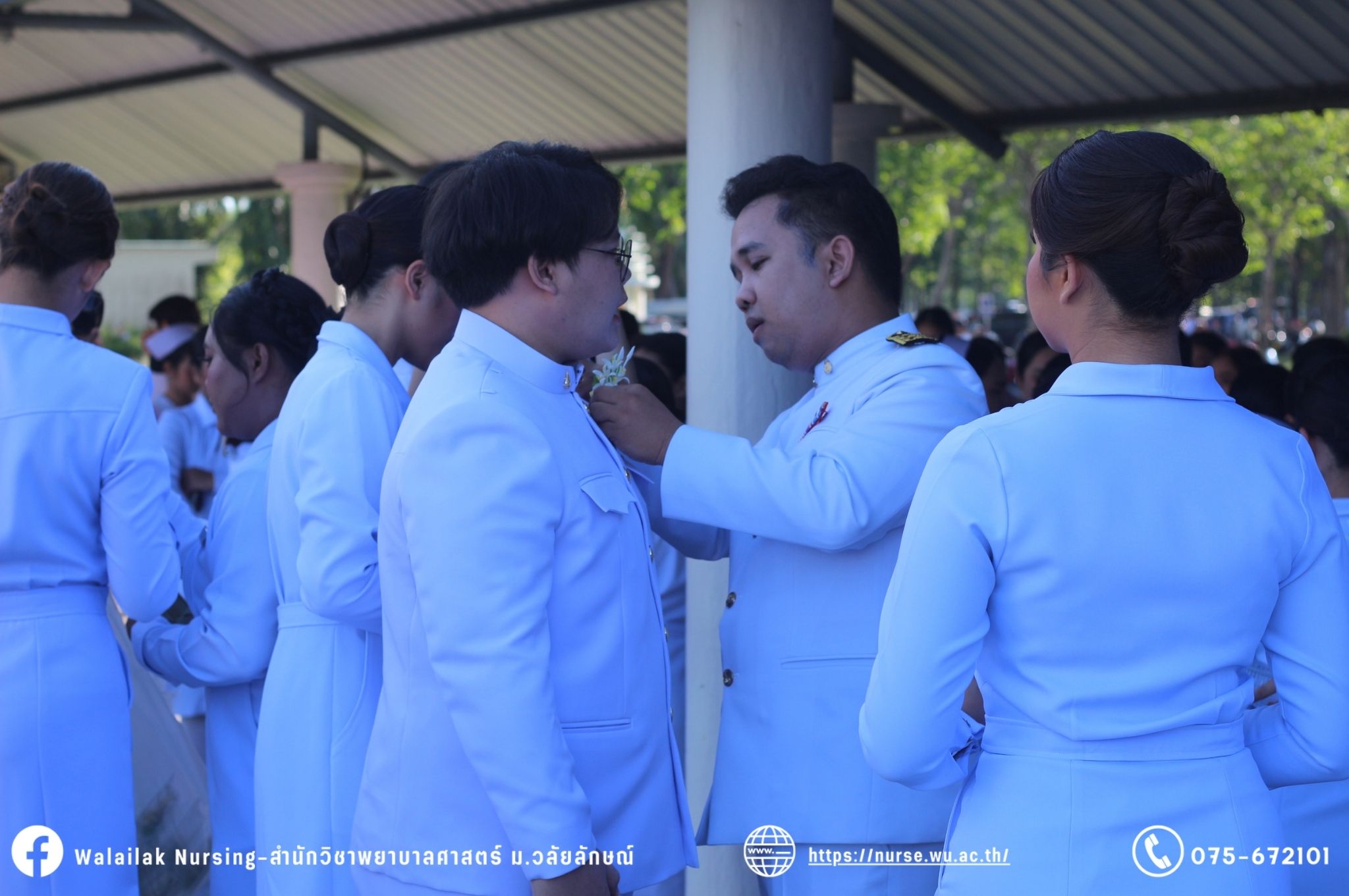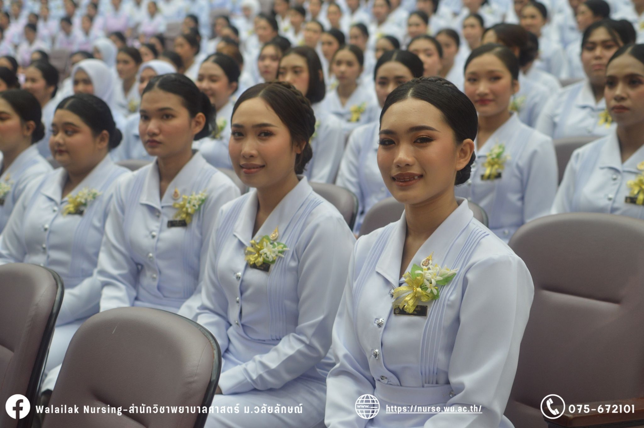 เมื่อวันที่ 15 มิถุนายน 2567 สำนักวิชาพยาบาลศาสตร์ มหาวิทยาลัยวลัยลักษณ์ จัดพิธี มอบขีด หมวกพยาบาล เข็มสถาบัน และพิธีมอบประกาศนียบัตรผู้ช่วยพยาบาล ณ หอประชุมใหญ่ อาคารไทยบุรี โดยกิจกรรมในครั้งนี้ ผู้ช่วยศาสตราจารย์ ดร.อรเพ็ญ สุขะวัลลิ คณบดีสำนักวิชาพยาบาลศาสตร์เป็นประธานในพิธี อาจารย์สุดา ใจห้าว รองคณบดีสำนักวิชาพยาบาลศาสตร์ กล่าวรายงานโครงการ และกิจกรรมในครั้งนี้ได้รับเกียรติจาก ศาสตราจารย์ ดร.สมบัติ ธำรงธัญวงศ์ อธิการบดี มหาวิทยาลัยวลัยลักษณ์ ได้เข้าร่วมพิธี กล่าวต้อนรับผู้ปกครองและให้โอวาท แสดงความยินดีกับผู้สำเร็จการศึกษา นักศึกษาที่ได้รับหมวก ขีดหมวก เข็มสถาบัน และผู้ได้รับรางวัล สำหรับการจัดกิจกรรมในครั้งนี้ได้จัดขึ้นเพื่อแสดงความยินดีให้กับบัณฑิตหลักสูตรพยาบาลศาสตรบัณฑิต ที่สำเร็จการศึกษา นักศึกษาพยาบาลชั้นปีที่ 3 มหาบัณฑิต หลักสูตรพยาบาลศาสตรมหาบัณฑิต ผู้สำเร็จการศึกษาหลักสูตรประกาศนียบัตรผู้ช่วยพยาบาล และผู้ได้รับรางวัลและเกียรติบัตรในการเป็นตัวอย่างที่ดีทั้งด้านการเรียนการปฏิบัติงาน จิตอาสา และบำเพ็ญประโยชน์เพื่อส่วนรวม รวมถึงผู้ได้รับรางวัลศิษย์เก่าดีเด่น จากสมาคมศิษย์เก่าพยาบาลวลัยลักษณ์ ทั้งนี้เพื่อเป็นการสร้างสัมพันธภาพที่ดีระหว่างรุ่นพี่ รุ่นน้อง และสร้างเจตคติที่ดีต่อวิชาชีพ พร้อมเข้าสู่วิชาชีพพยาบาลทั้งในด้านวิชาการ วิชาชีพ