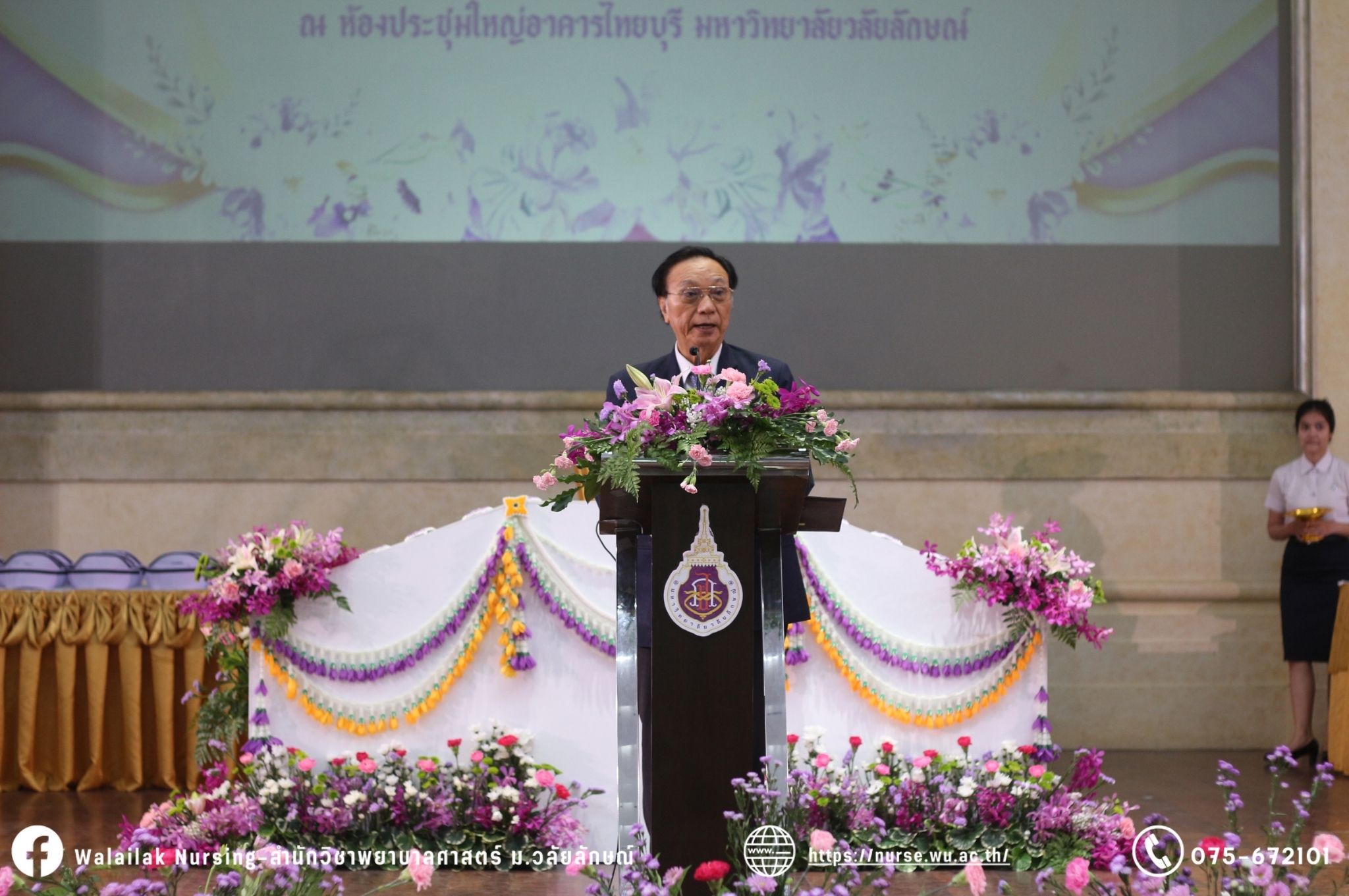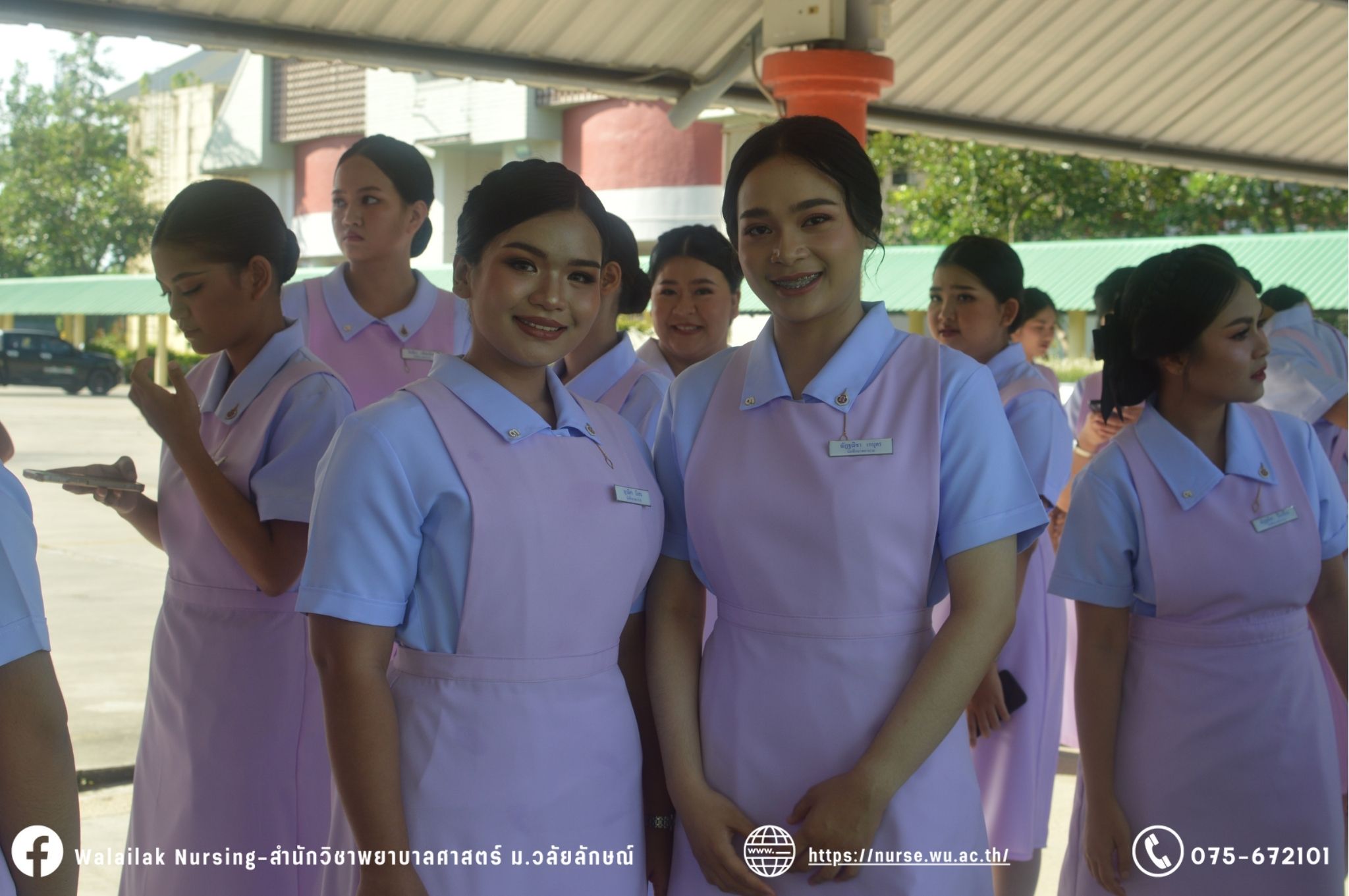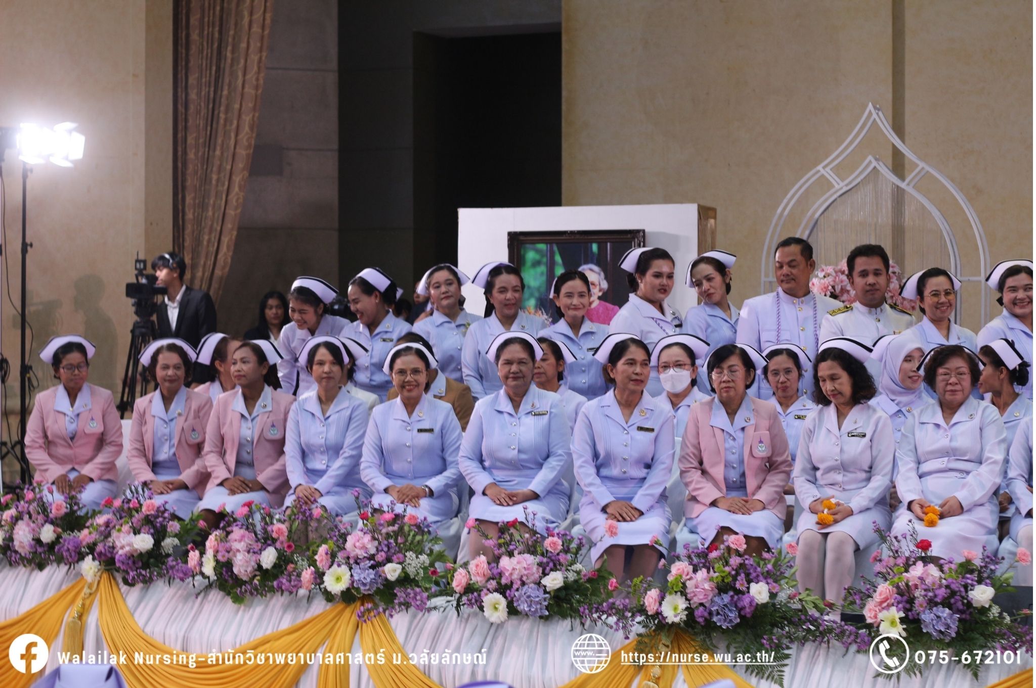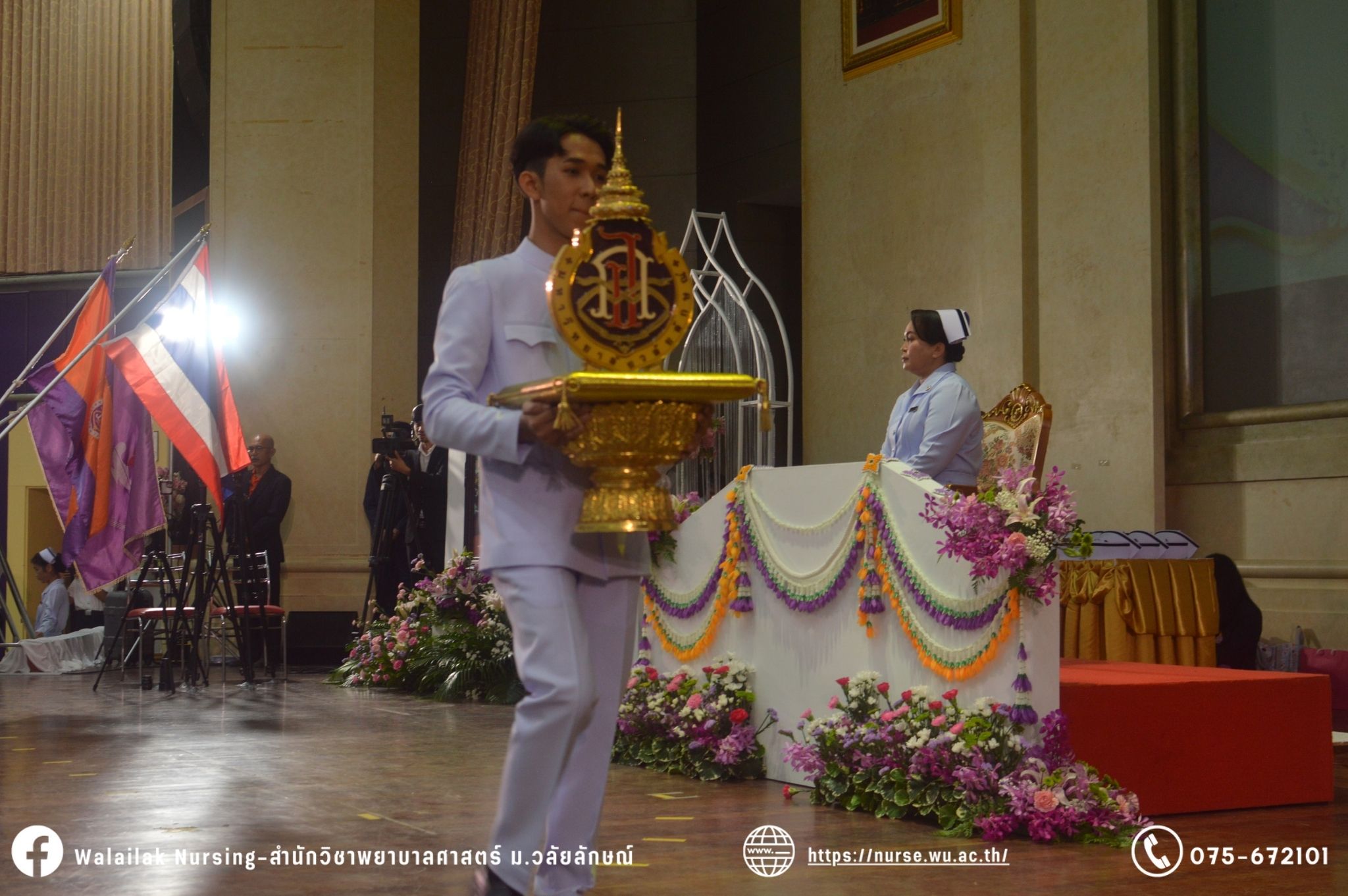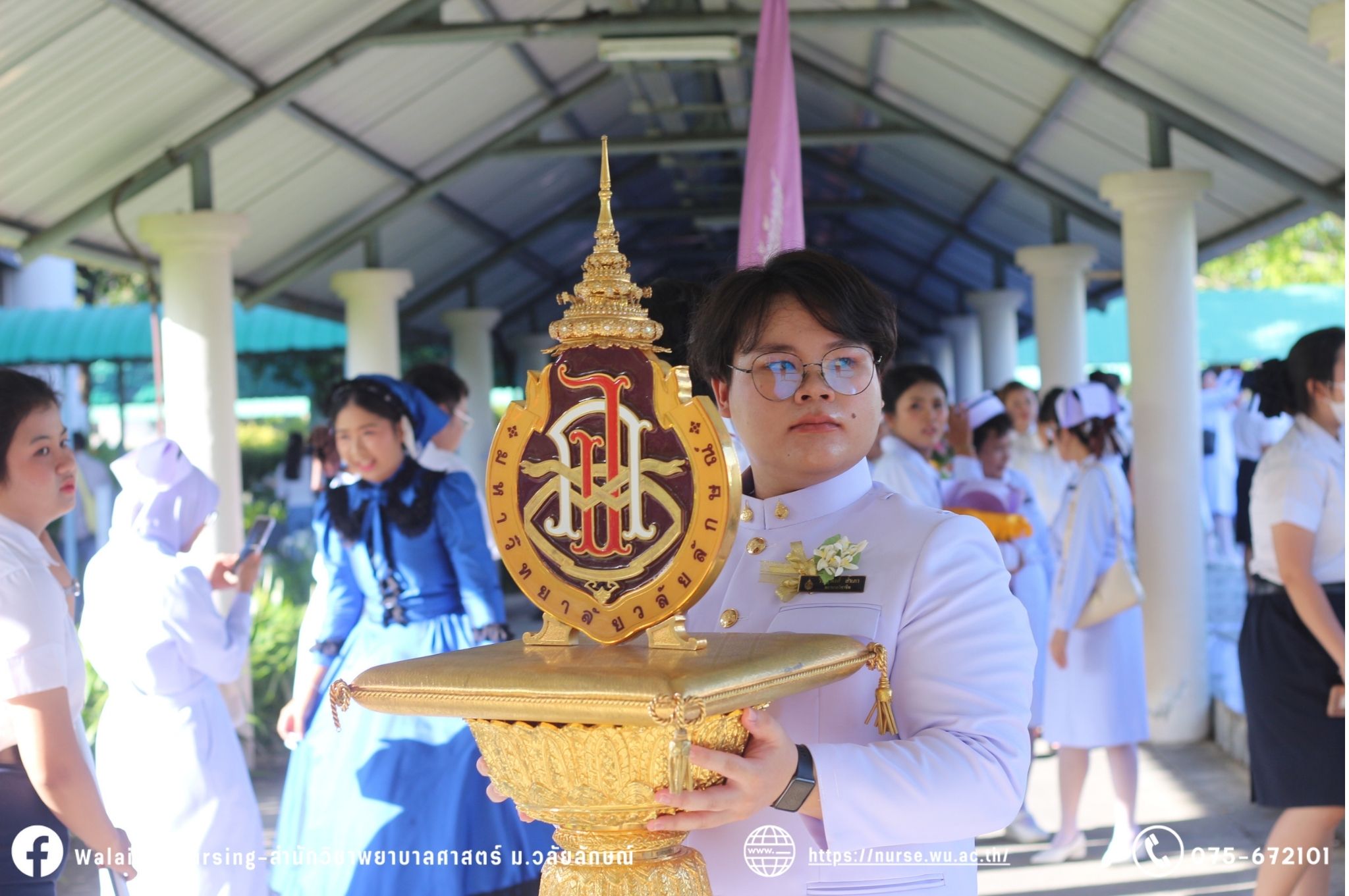 เมื่อวันที่ 15 มิถุนายน 2567 สำนักวิชาพยาบาลศาสตร์ มหาวิทยาลัยวลัยลักษณ์ จัดพิธี มอบขีด หมวกพยาบาล เข็มสถาบัน และพิธีมอบประกาศนียบัตรผู้ช่วยพยาบาล ณ หอประชุมใหญ่ อาคารไทยบุรี โดยกิจกรรมในครั้งนี้ ผู้ช่วยศาสตราจารย์ ดร.อรเพ็ญ สุขะวัลลิ คณบดีสำนักวิชาพยาบาลศาสตร์เป็นประธานในพิธี อาจารย์สุดา ใจห้าว รองคณบดีสำนักวิชาพยาบาลศาสตร์ กล่าวรายงานโครงการ และกิจกรรมในครั้งนี้ได้รับเกียรติจาก ศาสตราจารย์ ดร.สมบัติ ธำรงธัญวงศ์ อธิการบดี มหาวิทยาลัยวลัยลักษณ์ ได้เข้าร่วมพิธี กล่าวต้อนรับผู้ปกครองและให้โอวาท แสดงความยินดีกับผู้สำเร็จการศึกษา นักศึกษาที่ได้รับหมวก ขีดหมวก เข็มสถาบัน และผู้ได้รับรางวัล สำหรับการจัดกิจกรรมในครั้งนี้ได้จัดขึ้นเพื่อแสดงความยินดีให้กับบัณฑิตหลักสูตรพยาบาลศาสตรบัณฑิต ที่สำเร็จการศึกษา นักศึกษาพยาบาลชั้นปีที่ 3 มหาบัณฑิต หลักสูตรพยาบาลศาสตรมหาบัณฑิต ผู้สำเร็จการศึกษาหลักสูตรประกาศนียบัตรผู้ช่วยพยาบาล และผู้ได้รับรางวัลและเกียรติบัตรในการเป็นตัวอย่างที่ดีทั้งด้านการเรียนการปฏิบัติงาน จิตอาสา และบำเพ็ญประโยชน์เพื่อส่วนรวม รวมถึงผู้ได้รับรางวัลศิษย์เก่าดีเด่น จากสมาคมศิษย์เก่าพยาบาลวลัยลักษณ์ ทั้งนี้เพื่อเป็นการสร้างสัมพันธภาพที่ดีระหว่างรุ่นพี่ รุ่นน้อง และสร้างเจตคติที่ดีต่อวิชาชีพ พร้อมเข้าสู่วิชาชีพพยาบาลทั้งในด้านวิชาการ วิชาชีพ