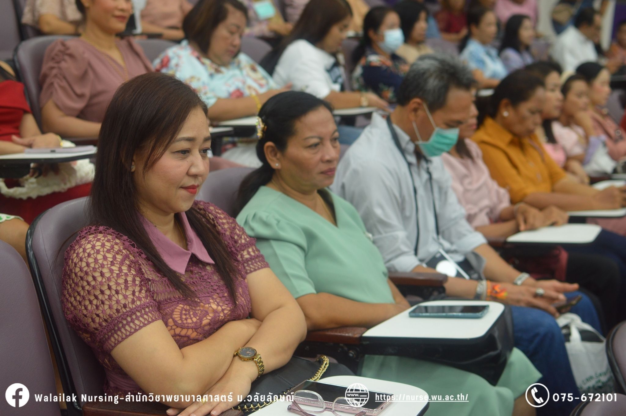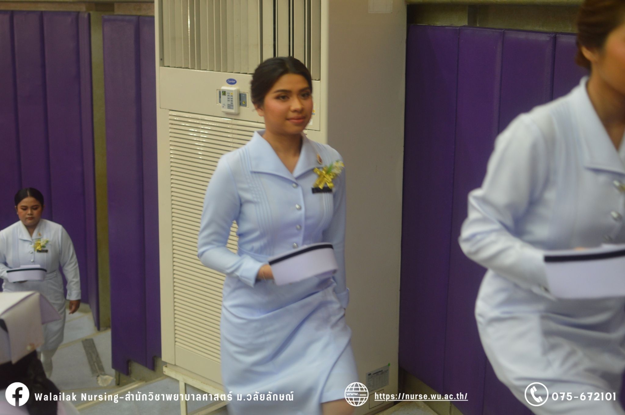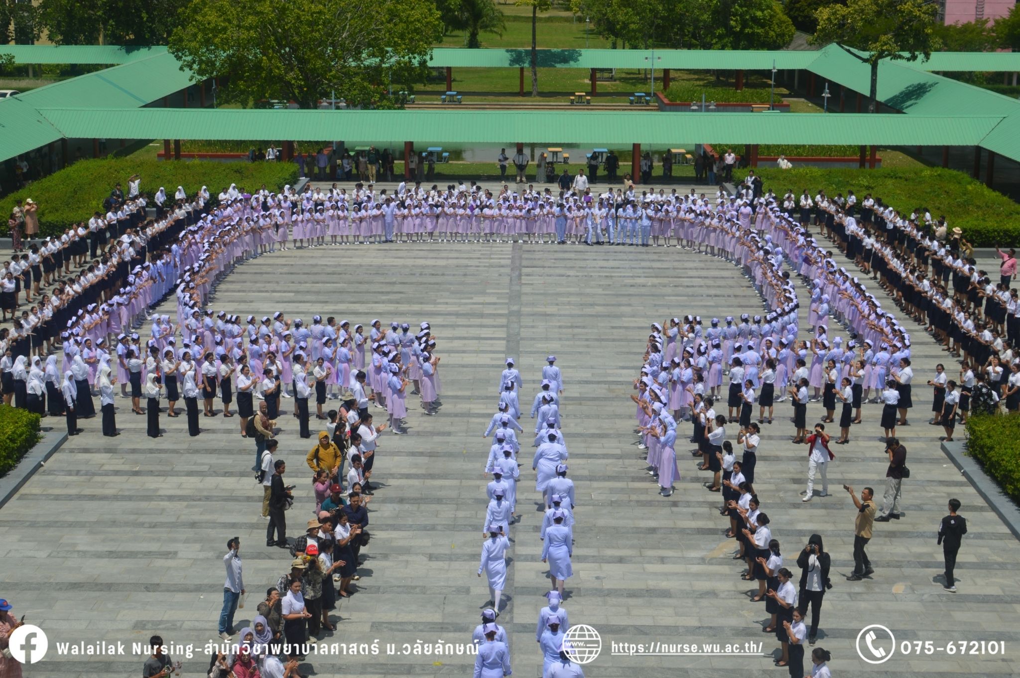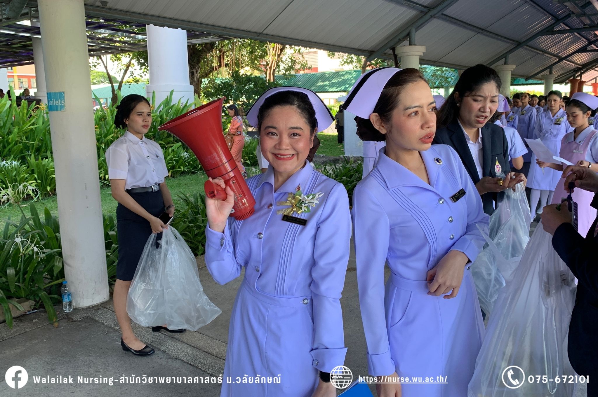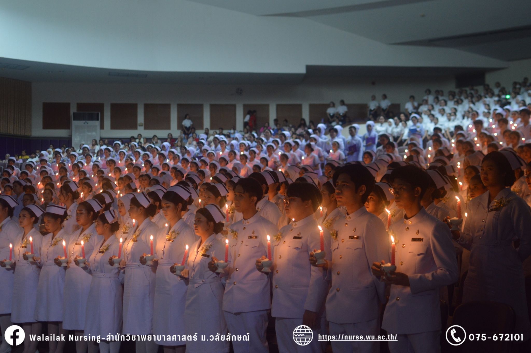 เมื่อวันที่ 15 มิถุนายน 2567 สำนักวิชาพยาบาลศาสตร์ มหาวิทยาลัยวลัยลักษณ์ จัดพิธี มอบขีด หมวกพยาบาล เข็มสถาบัน และพิธีมอบประกาศนียบัตรผู้ช่วยพยาบาล ณ หอประชุมใหญ่ อาคารไทยบุรี โดยกิจกรรมในครั้งนี้ ผู้ช่วยศาสตราจารย์ ดร.อรเพ็ญ สุขะวัลลิ คณบดีสำนักวิชาพยาบาลศาสตร์เป็นประธานในพิธี อาจารย์สุดา ใจห้าว รองคณบดีสำนักวิชาพยาบาลศาสตร์ กล่าวรายงานโครงการ และกิจกรรมในครั้งนี้ได้รับเกียรติจาก ศาสตราจารย์ ดร.สมบัติ ธำรงธัญวงศ์ อธิการบดี มหาวิทยาลัยวลัยลักษณ์ ได้เข้าร่วมพิธี กล่าวต้อนรับผู้ปกครองและให้โอวาท แสดงความยินดีกับผู้สำเร็จการศึกษา นักศึกษาที่ได้รับหมวก ขีดหมวก เข็มสถาบัน และผู้ได้รับรางวัล สำหรับการจัดกิจกรรมในครั้งนี้ได้จัดขึ้นเพื่อแสดงความยินดีให้กับบัณฑิตหลักสูตรพยาบาลศาสตรบัณฑิต ที่สำเร็จการศึกษา นักศึกษาพยาบาลชั้นปีที่ 3 มหาบัณฑิต หลักสูตรพยาบาลศาสตรมหาบัณฑิต ผู้สำเร็จการศึกษาหลักสูตรประกาศนียบัตรผู้ช่วยพยาบาล และผู้ได้รับรางวัลและเกียรติบัตรในการเป็นตัวอย่างที่ดีทั้งด้านการเรียนการปฏิบัติงาน จิตอาสา และบำเพ็ญประโยชน์เพื่อส่วนรวม รวมถึงผู้ได้รับรางวัลศิษย์เก่าดีเด่น จากสมาคมศิษย์เก่าพยาบาลวลัยลักษณ์ ทั้งนี้เพื่อเป็นการสร้างสัมพันธภาพที่ดีระหว่างรุ่นพี่ รุ่นน้อง และสร้างเจตคติที่ดีต่อวิชาชีพ พร้อมเข้าสู่วิชาชีพพยาบาลทั้งในด้านวิชาการ วิชาชีพ