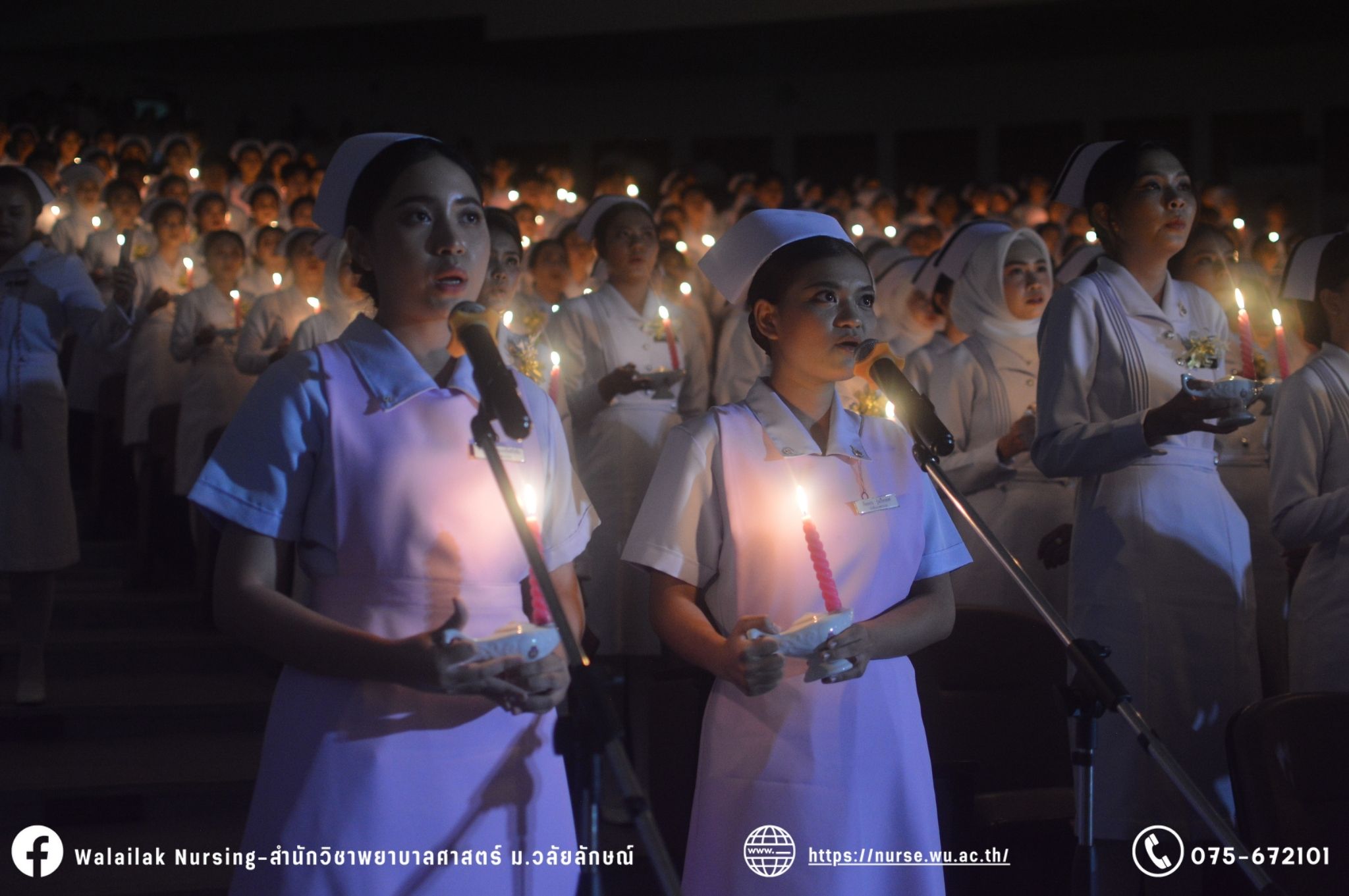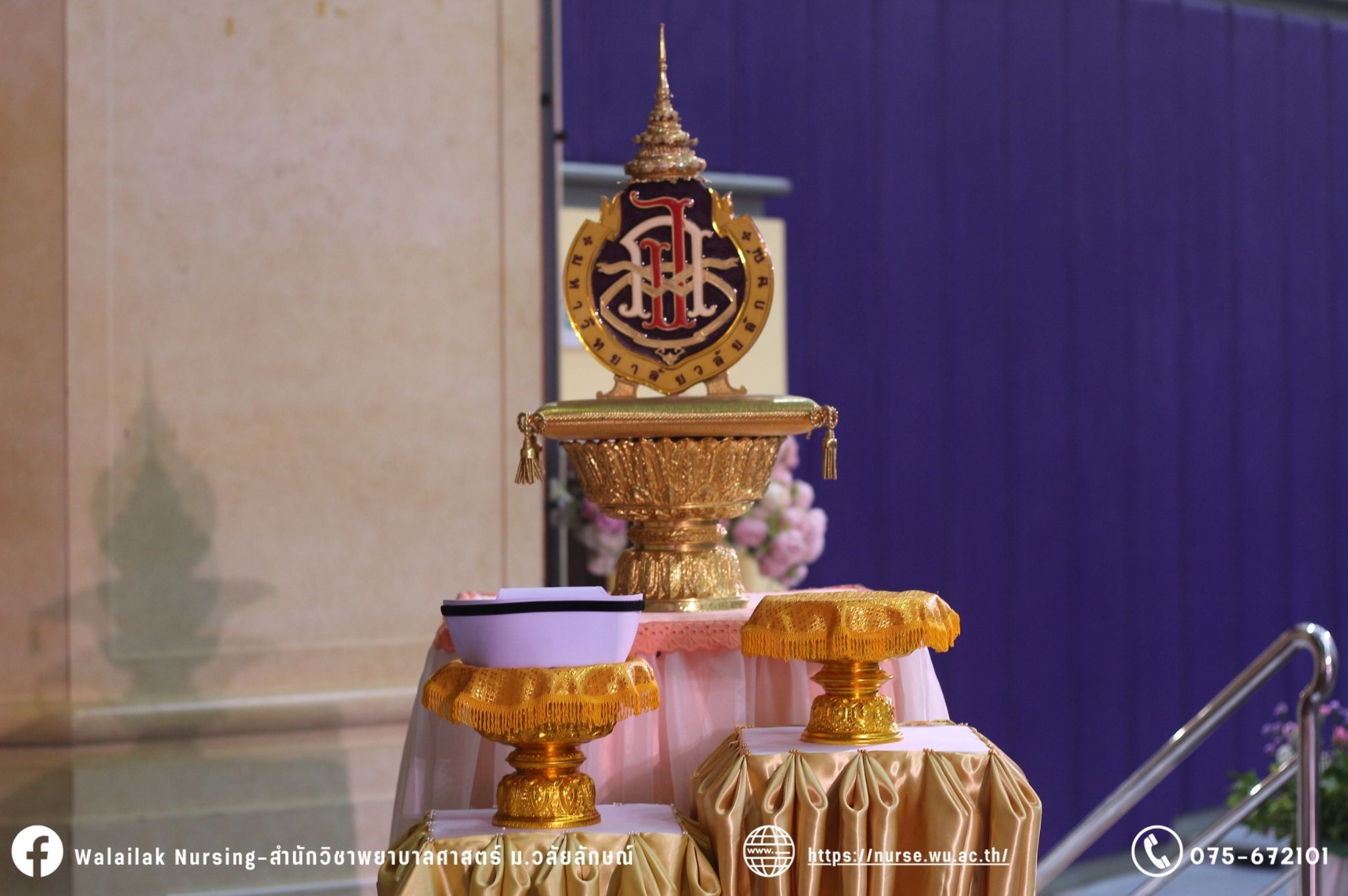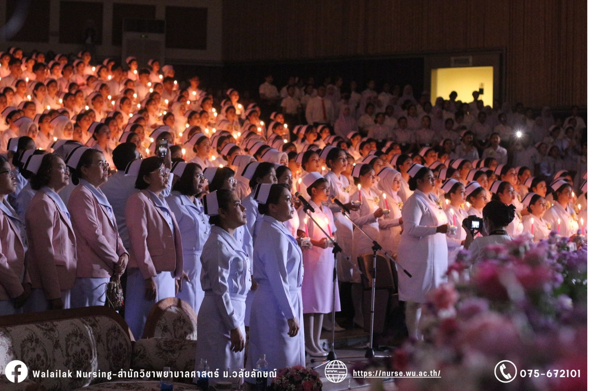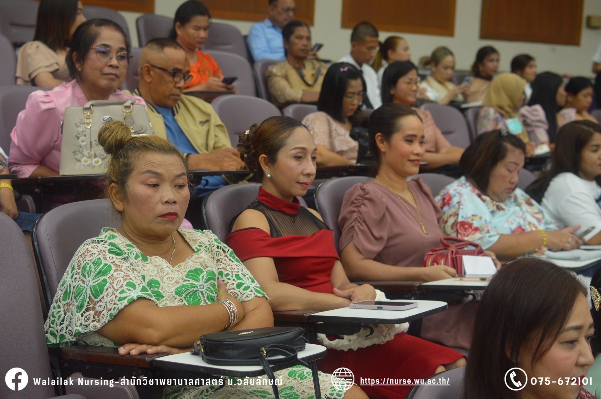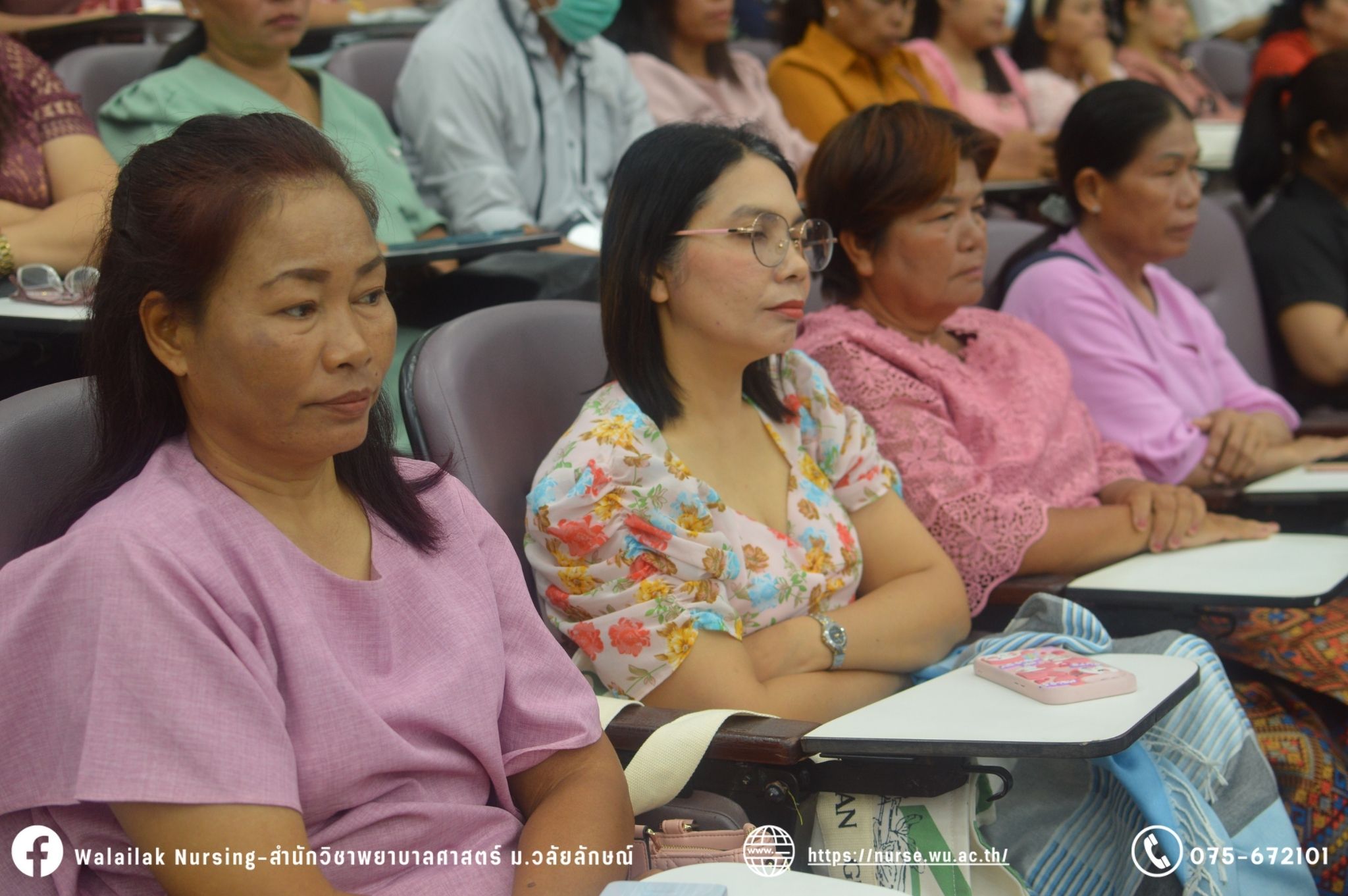 เมื่อวันที่ 15 มิถุนายน 2567 สำนักวิชาพยาบาลศาสตร์ มหาวิทยาลัยวลัยลักษณ์ จัดพิธี มอบขีด หมวกพยาบาล เข็มสถาบัน และพิธีมอบประกาศนียบัตรผู้ช่วยพยาบาล ณ หอประชุมใหญ่ อาคารไทยบุรี โดยกิจกรรมในครั้งนี้ ผู้ช่วยศาสตราจารย์ ดร.อรเพ็ญ สุขะวัลลิ คณบดีสำนักวิชาพยาบาลศาสตร์เป็นประธานในพิธี อาจารย์สุดา ใจห้าว รองคณบดีสำนักวิชาพยาบาลศาสตร์ กล่าวรายงานโครงการ และกิจกรรมในครั้งนี้ได้รับเกียรติจาก ศาสตราจารย์ ดร.สมบัติ ธำรงธัญวงศ์ อธิการบดี มหาวิทยาลัยวลัยลักษณ์ ได้เข้าร่วมพิธี กล่าวต้อนรับผู้ปกครองและให้โอวาท แสดงความยินดีกับผู้สำเร็จการศึกษา นักศึกษาที่ได้รับหมวก ขีดหมวก เข็มสถาบัน และผู้ได้รับรางวัล สำหรับการจัดกิจกรรมในครั้งนี้ได้จัดขึ้นเพื่อแสดงความยินดีให้กับบัณฑิตหลักสูตรพยาบาลศาสตรบัณฑิต ที่สำเร็จการศึกษา นักศึกษาพยาบาลชั้นปีที่ 3 มหาบัณฑิต หลักสูตรพยาบาลศาสตรมหาบัณฑิต ผู้สำเร็จการศึกษาหลักสูตรประกาศนียบัตรผู้ช่วยพยาบาล และผู้ได้รับรางวัลและเกียรติบัตรในการเป็นตัวอย่างที่ดีทั้งด้านการเรียนการปฏิบัติงาน จิตอาสา และบำเพ็ญประโยชน์เพื่อส่วนรวม รวมถึงผู้ได้รับรางวัลศิษย์เก่าดีเด่น จากสมาคมศิษย์เก่าพยาบาลวลัยลักษณ์ ทั้งนี้เพื่อเป็นการสร้างสัมพันธภาพที่ดีระหว่างรุ่นพี่ รุ่นน้อง และสร้างเจตคติที่ดีต่อวิชาชีพ พร้อมเข้าสู่วิชาชีพพยาบาลทั้งในด้านวิชาการ วิชาชีพ