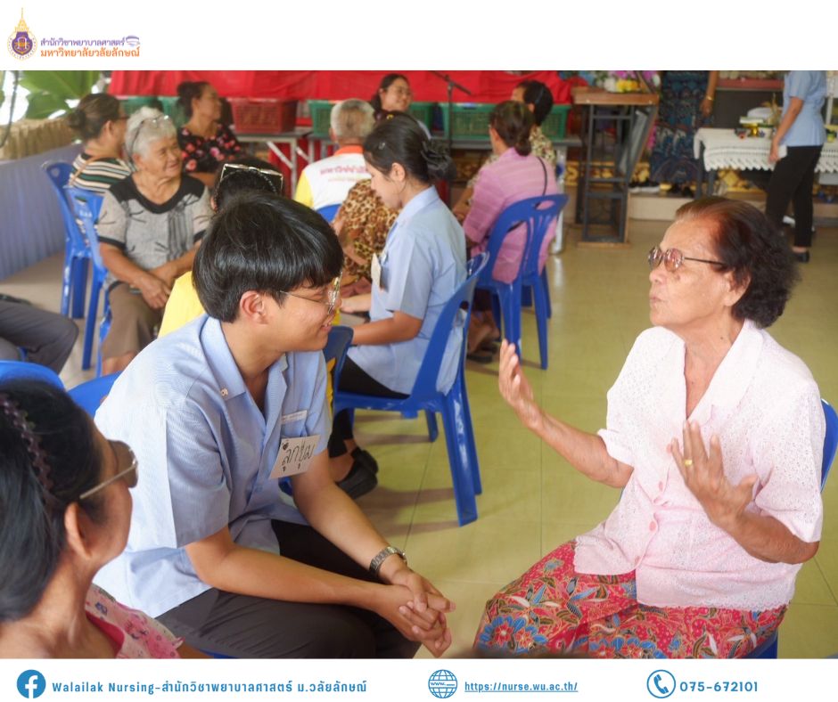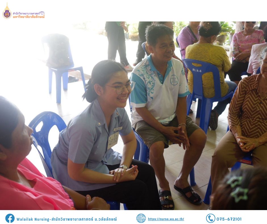 เมื่อวันที่ 9 กรกฎาคม 2568 เวลา 13:00-15:00 น. คณะนักศึกษาและอาจารย์จากสำนักวิชาพยาบาลศาสตร์ มหาวิทยาลัยวลัยลักษณ์ จัดโครงการ “สูงวัย ใจเป็นสุข” ณ ชมรมใส่ใจผู้สูงวัย หมู่ 4 ซึ่งเป็นส่วนหนึ่งของรายวิชาปฏิบัติการจิตเวชและสุขภาพจิต และอยู่ในเครือข่ายสุขภาพของโรงพยาบาลเทศบาลเมืองปากพูน สาขาบ้านศาลาบางปู