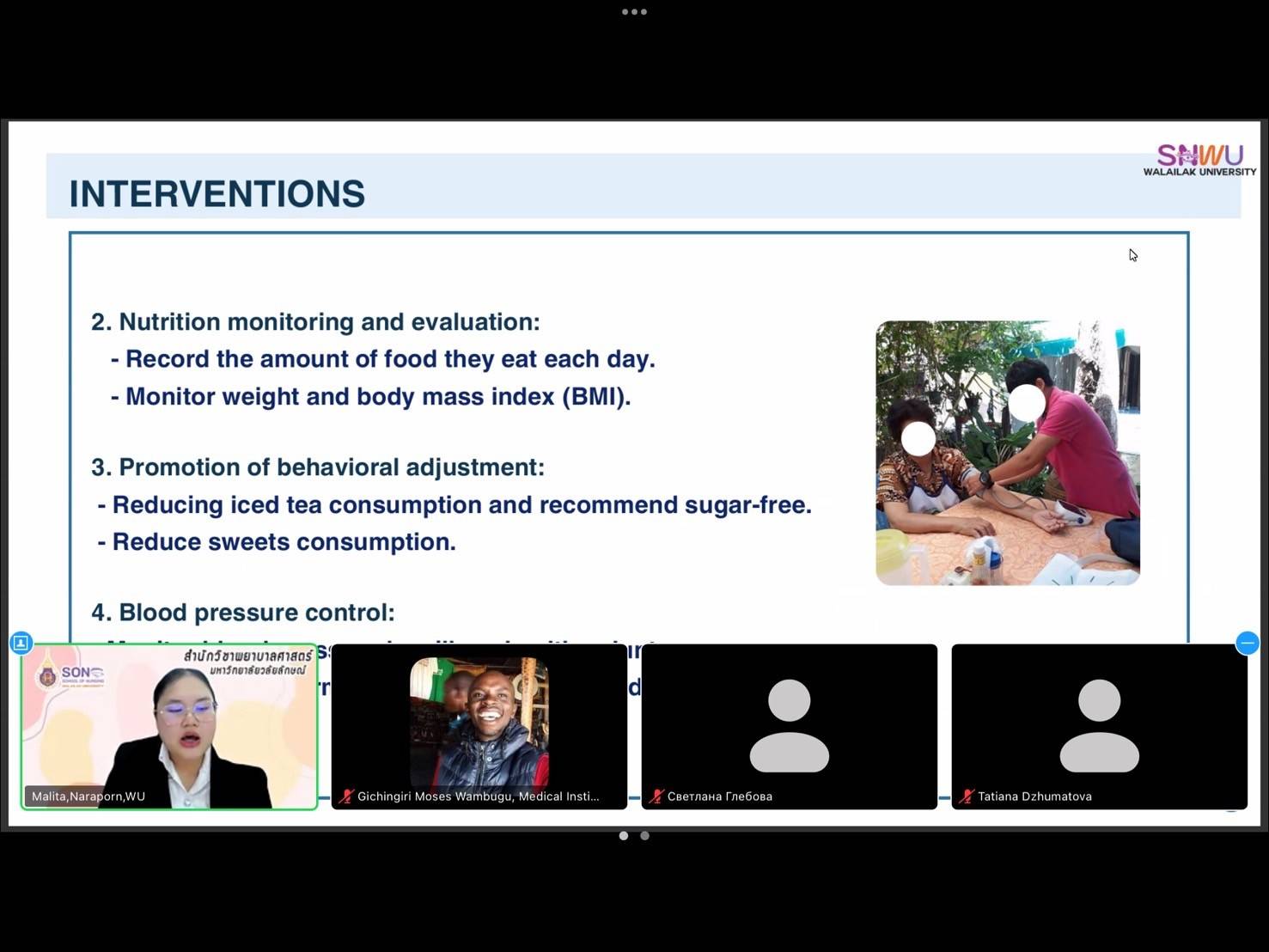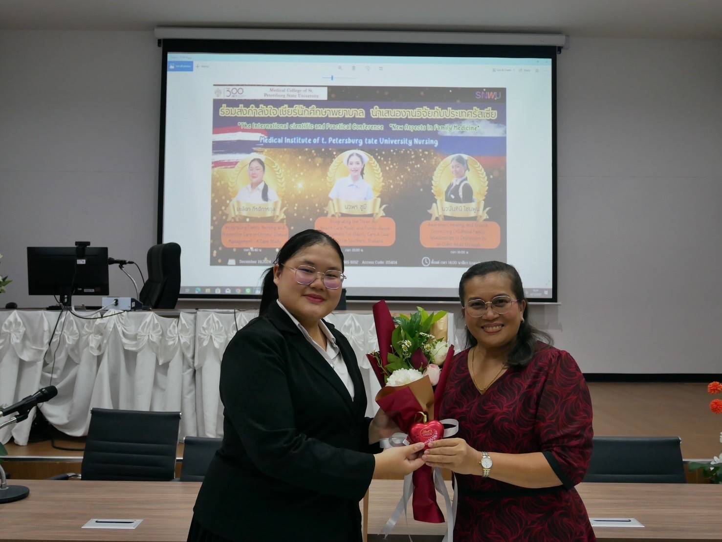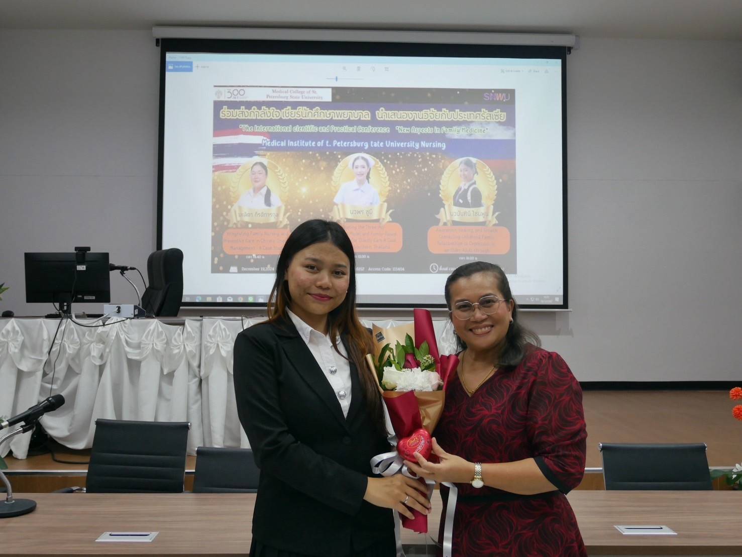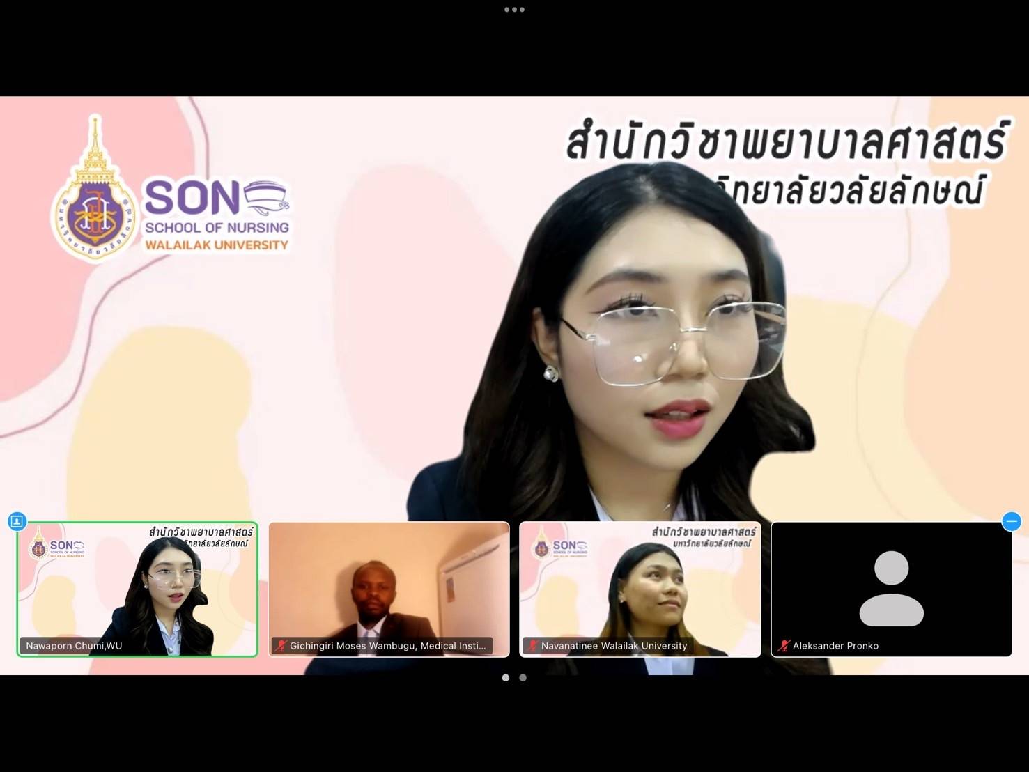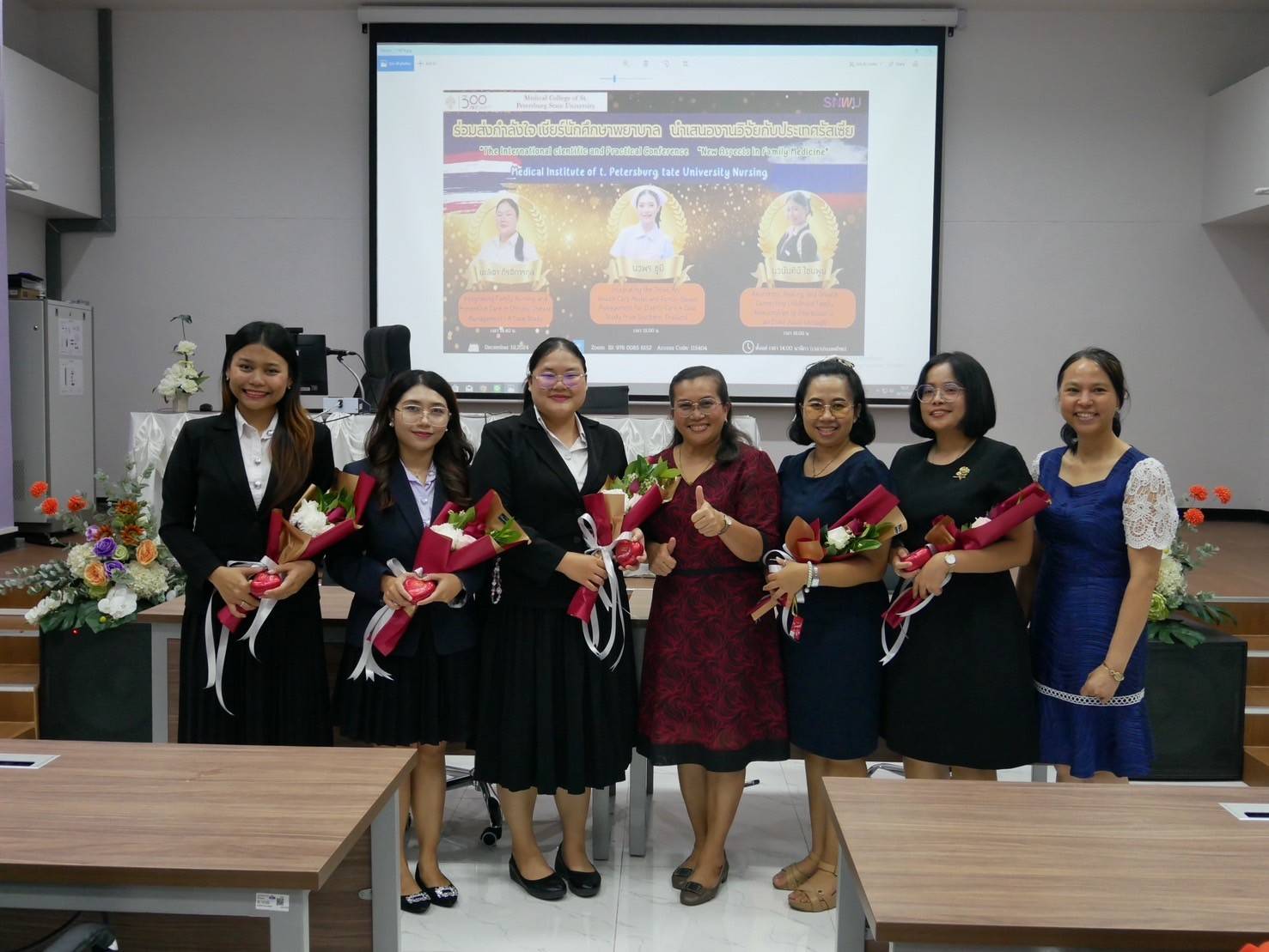 The School of Nursing, Walailak University, Thailand, proudly sent three students to participate in the international scientific and practical conference, “New Aspects in Family Medicine (Nursing),” organized by the School of Nursing, St. Petersburg State University, Russia. The conference took place online on December 19, 2024. The students presented their research effectively, bringing great pride to the School of Nursing.