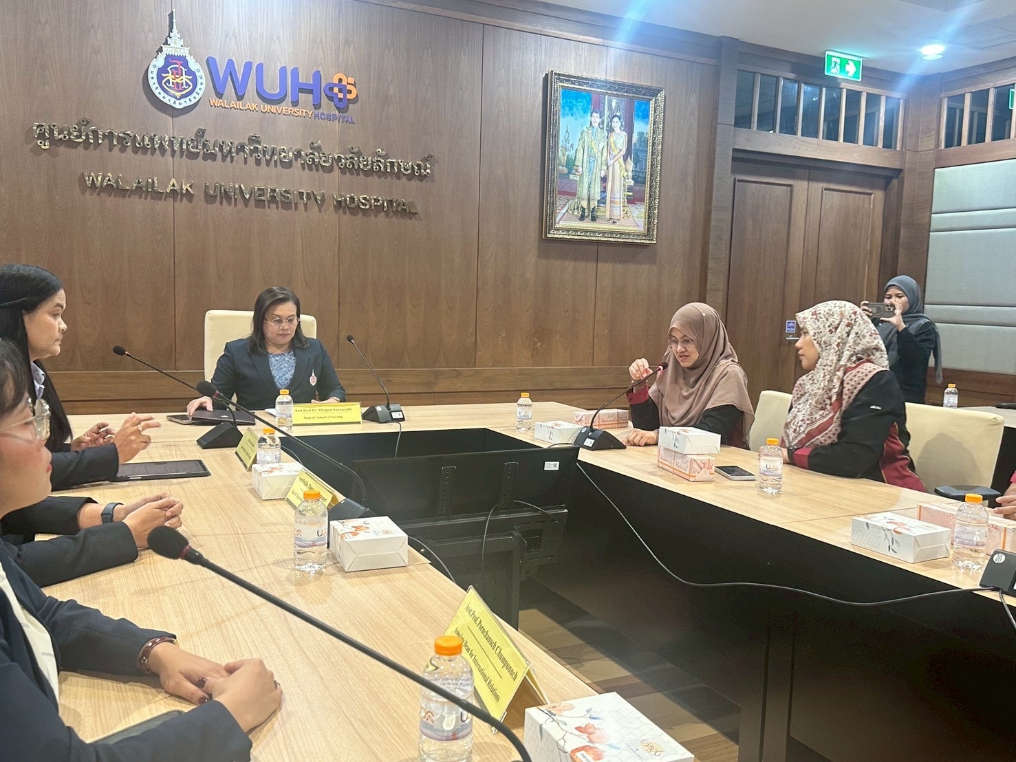 วันที่ 8 กันยายน 2568 สำนักวิชาพยาบาลศาสตร์ มหาวิทยาลัยวลัยลักษณ์ ให้การต้อนรับคณะอาจารย์และนักศึกษาจาก Nursing Program, Universiti Sains Malaysia (USM) อย่างอบอุ่น โดยมี ผู้ช่วยศาสตราจารย์ ดร.อรเพ็ญ สุขะวัลลิ คณบดีสำนักวิชาพยาบาลศาสตร์ ให้เกียรติกล่าวต้อนรับและแลกเปลี่ยนแนวคิดทางวิชาการร่วมกันในการเยือนครั้งนี้ คณะอาจารย์และนักศึกษาจาก จาก USM ได้เข้าเยี่ยมชมห้องปฏิบัติการทางการพยาบาล (Nursing Skills Lab) พร้อมทั้งเยี่ยมชม โรงพยาบาลศูนย์การแพทย์มหาวิทยาลัยวลัยลักษณ์ (WU Medical Center) ซึ่งเป็นส่วนสำคัญของการฝึกประสบการณ์วิชาชีพของนักศึกษาพยาบาล