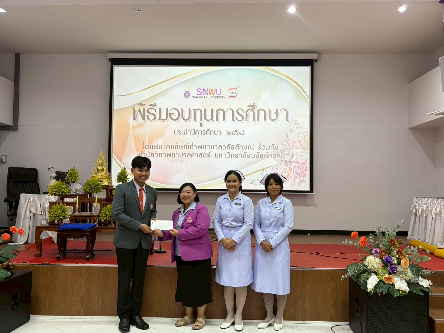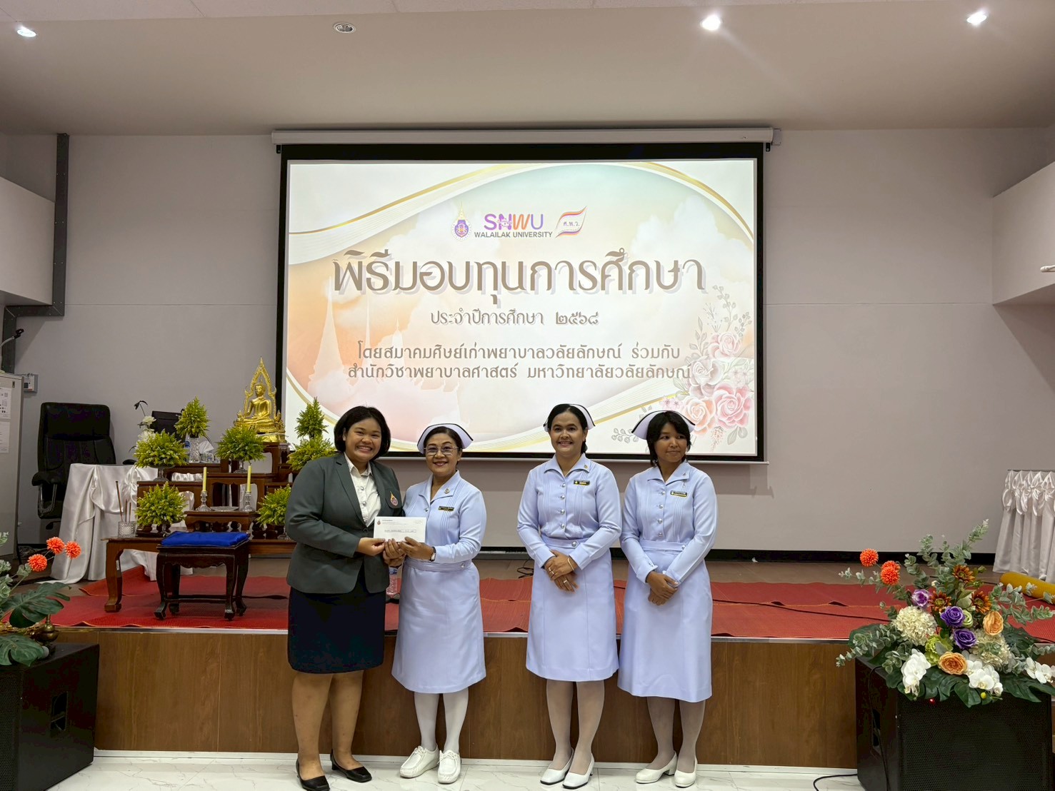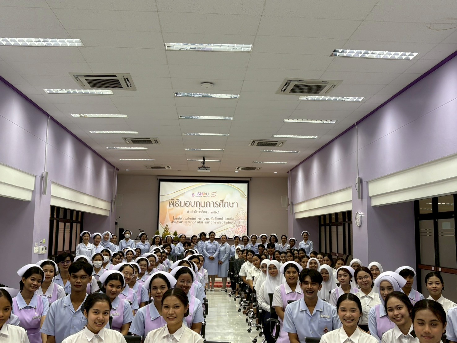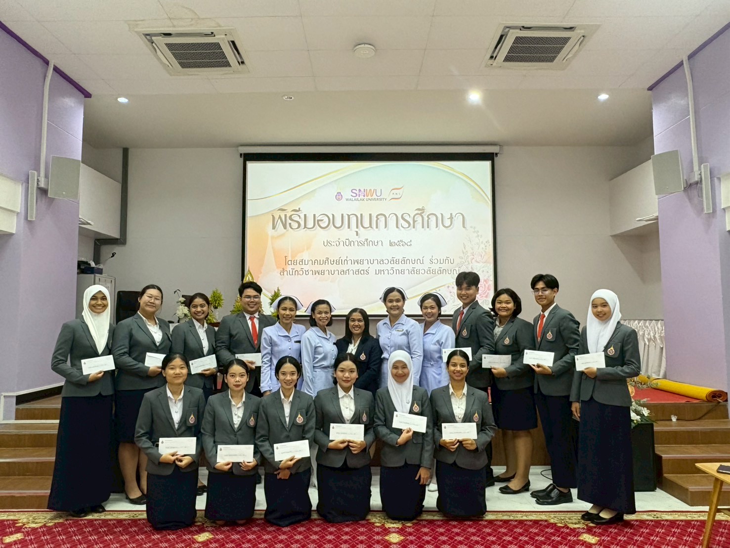 พิธีมอบทุนการศึกษาให้แก่นักศึกษาพยาบาล โดยสำนักวิชาพยาบาลศาสตร์ ร่วมกับ สมาคมศิษย์เก่าพยาบาลวลัยลักษณ์ เพื่อเป็นขวัญและกำลังใจในการศึกษาและประกอบวิชาชีพพยาบาลในอนาคต