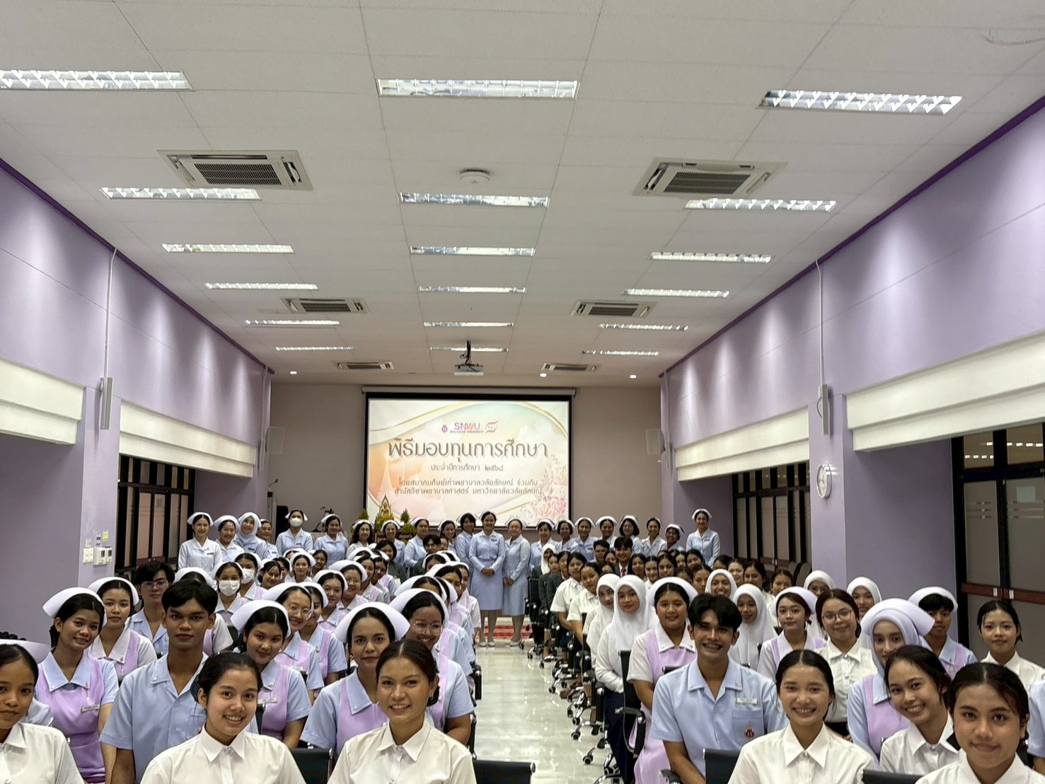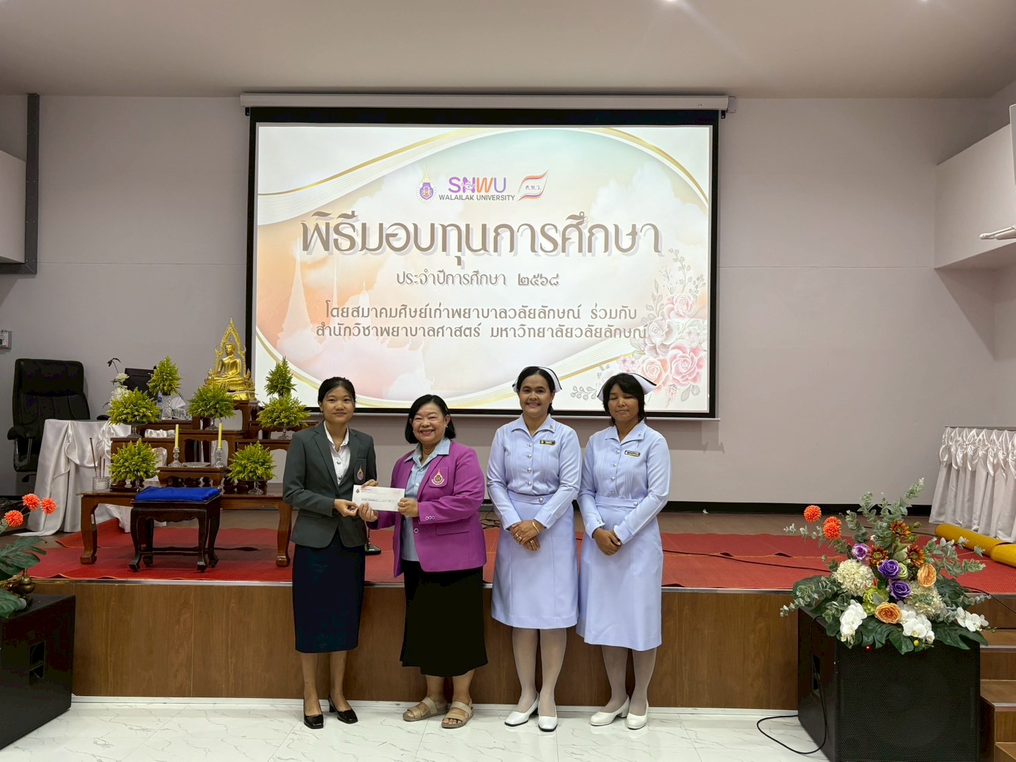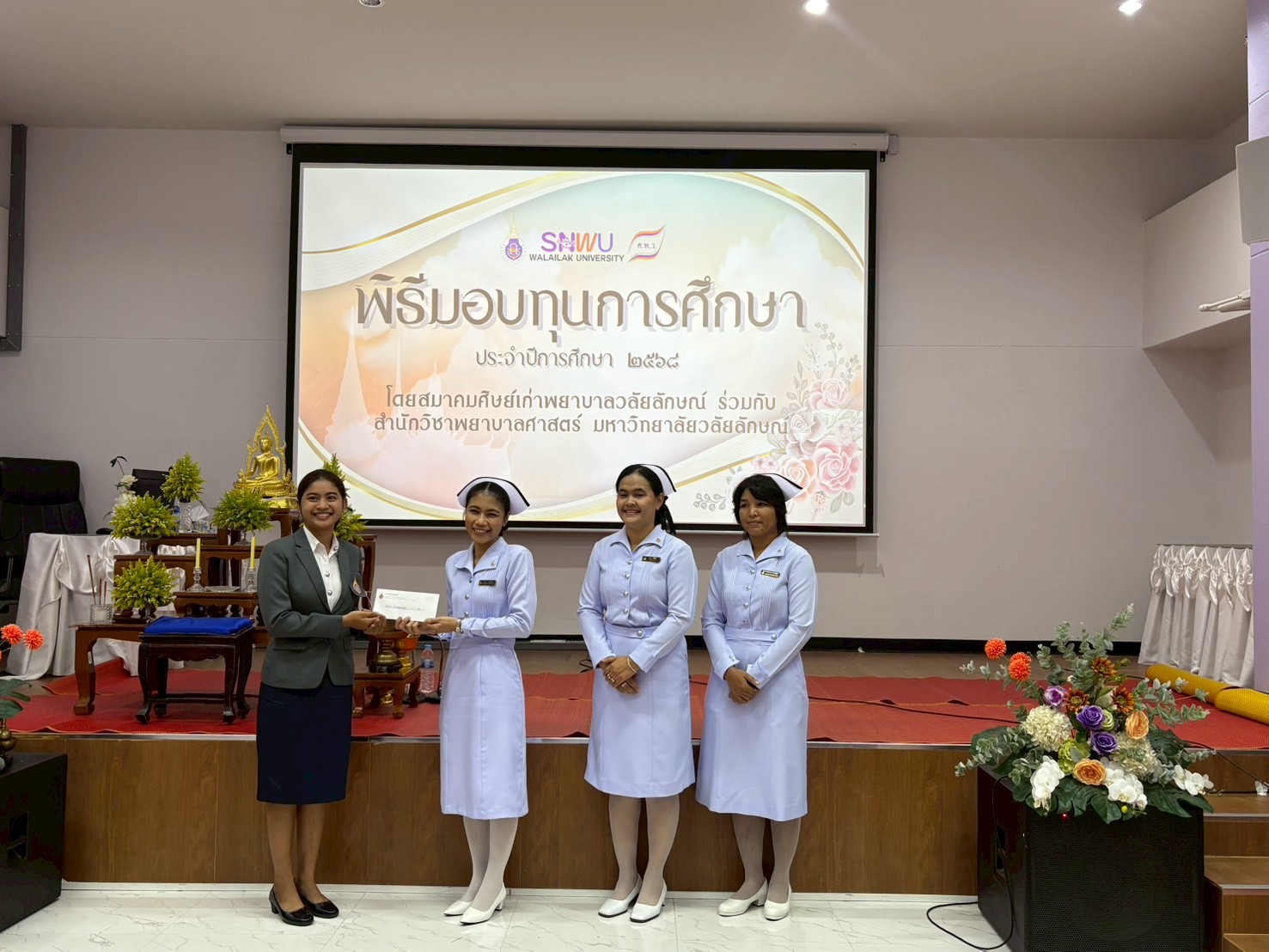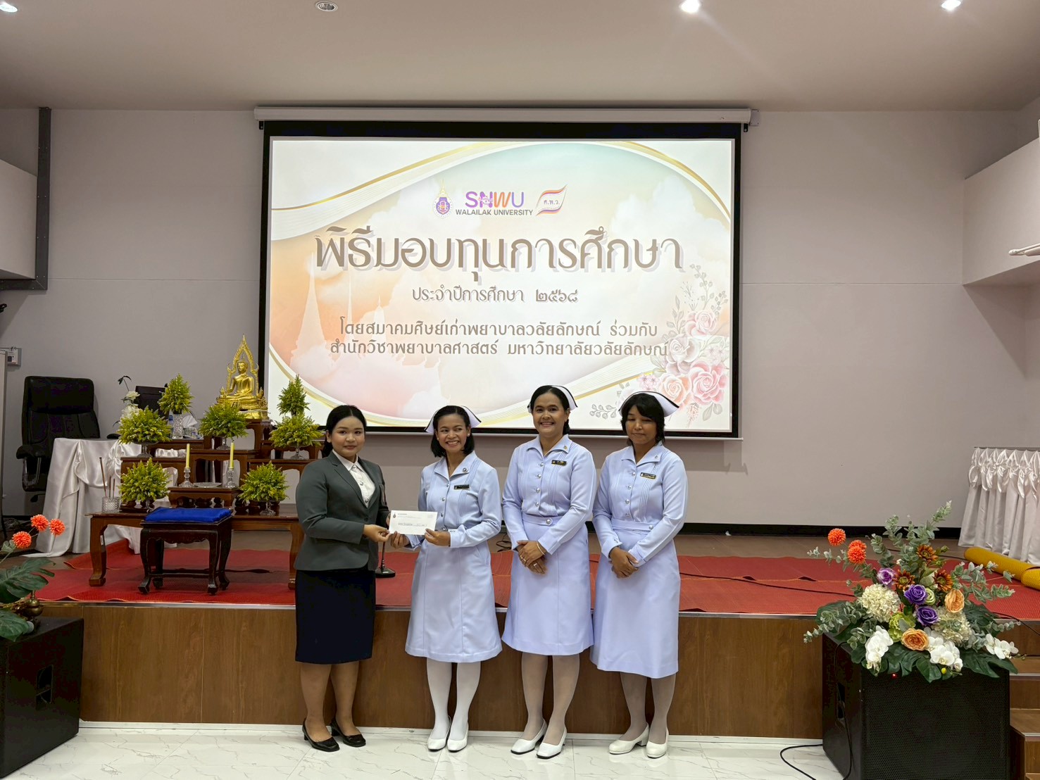 พิธีมอบทุนการศึกษาให้แก่นักศึกษาพยาบาล โดยสำนักวิชาพยาบาลศาสตร์ ร่วมกับ สมาคมศิษย์เก่าพยาบาลวลัยลักษณ์ เพื่อเป็นขวัญและกำลังใจในการศึกษาและประกอบวิชาชีพพยาบาลในอนาคต